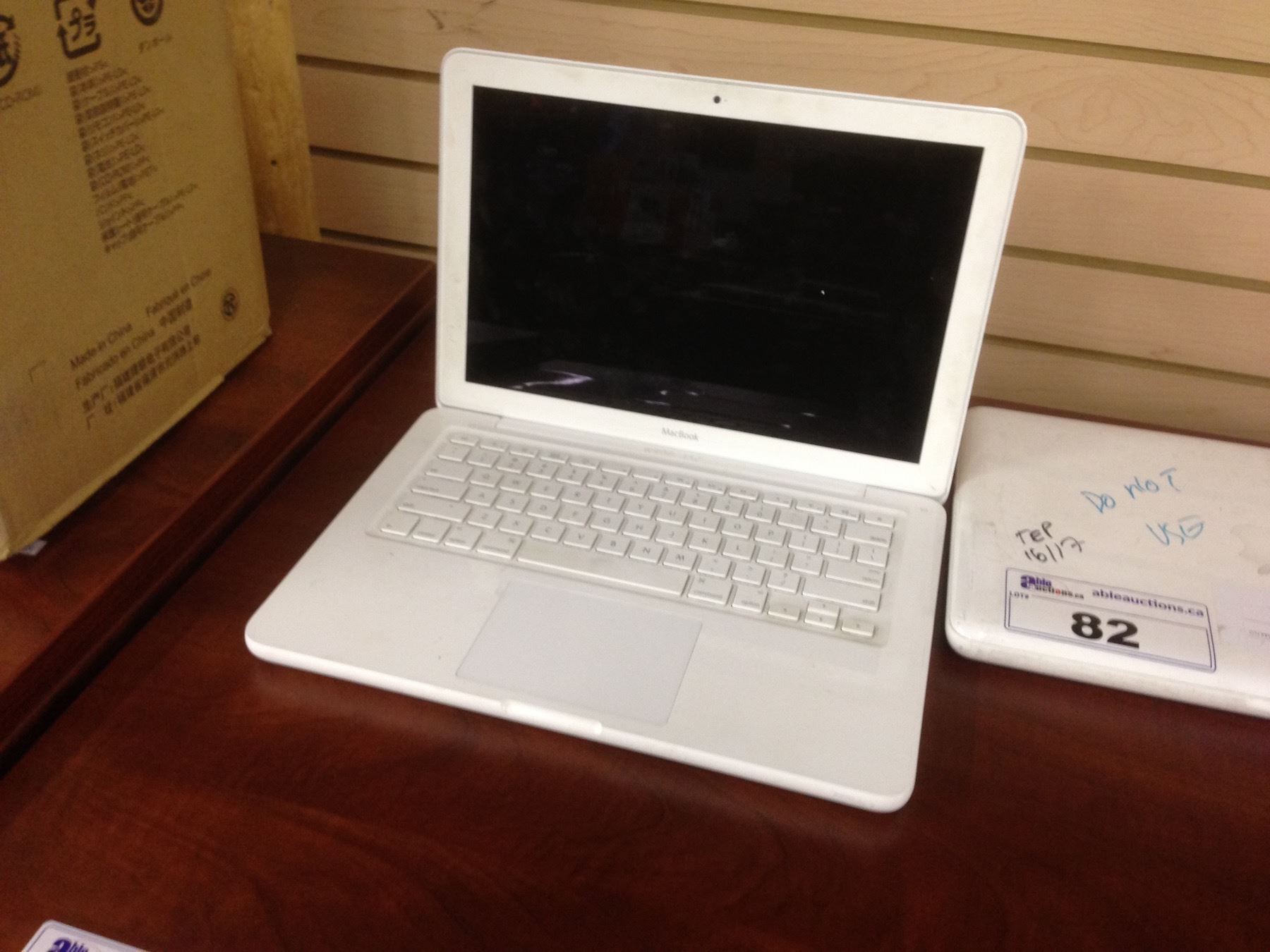 APPLE WHITE MACBOOK LAPTOP, NO HARD DRIVE, NO BATTERY, NO POWER SUPPLY, CONDITION UNKNOWN