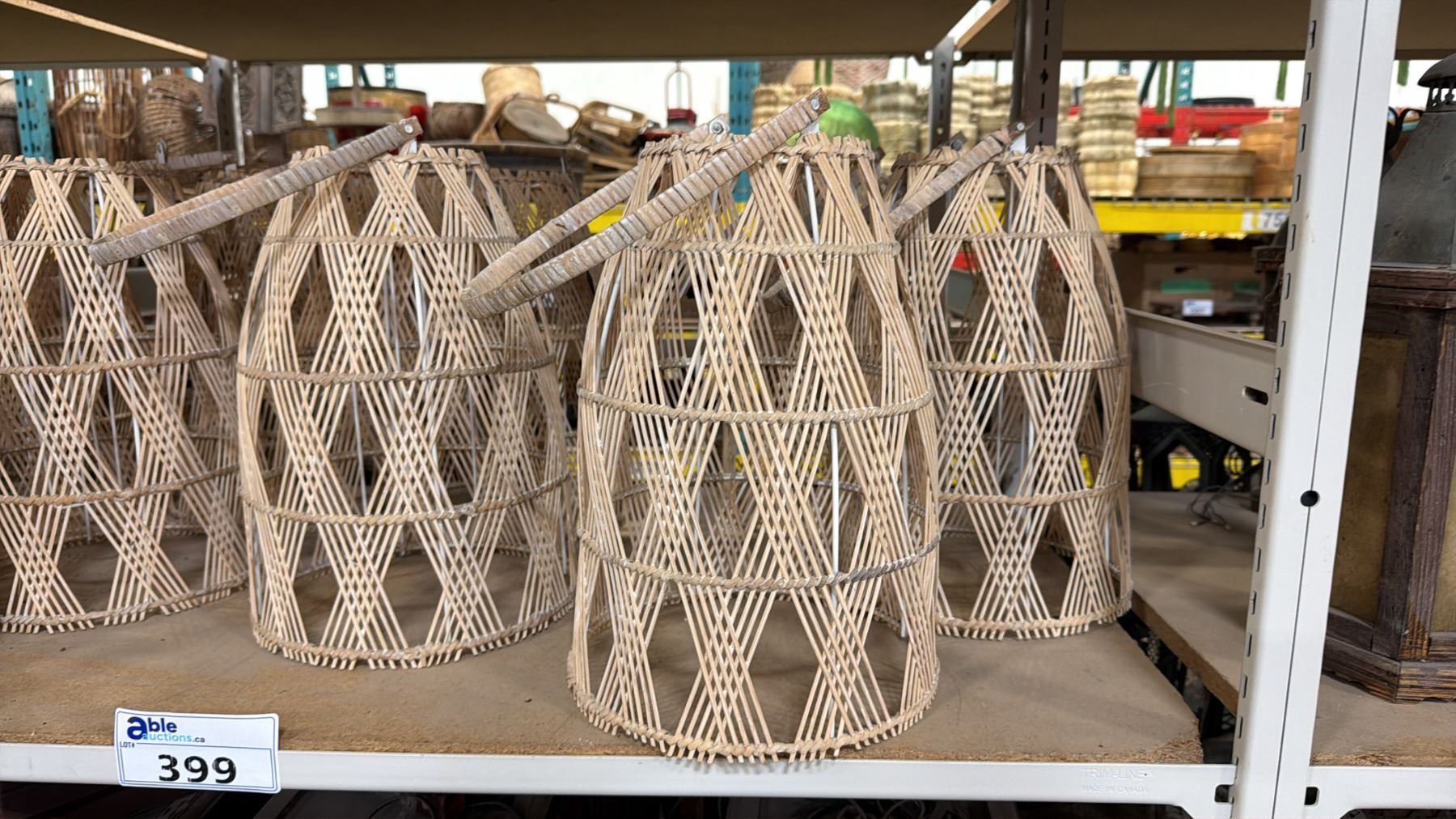 APPROX 10 WICKER HANGING CANDLE LANTERN SHADES