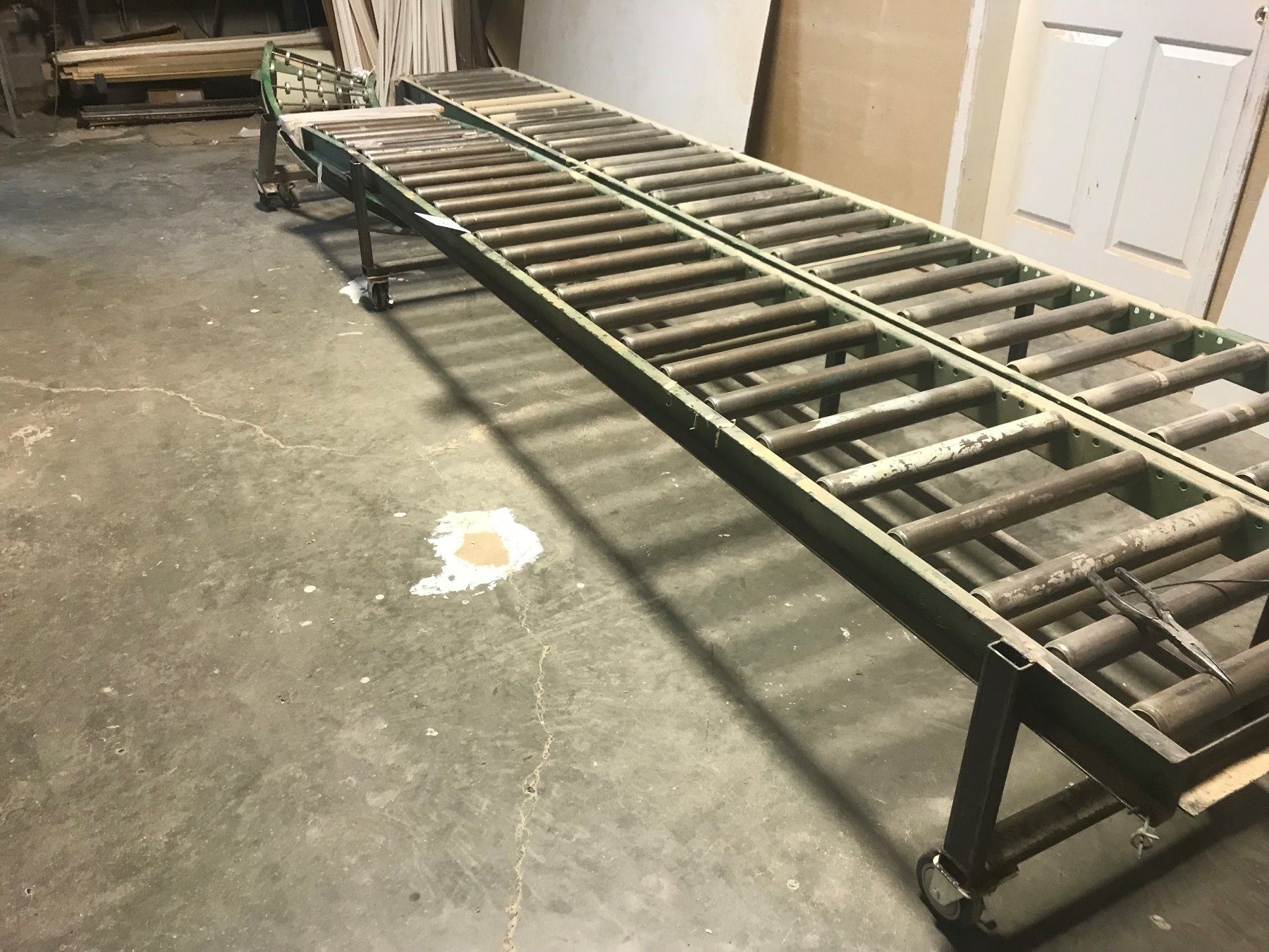 APPROX 12' ROLLER CONVEYOR ON WHEELS W/CORNER