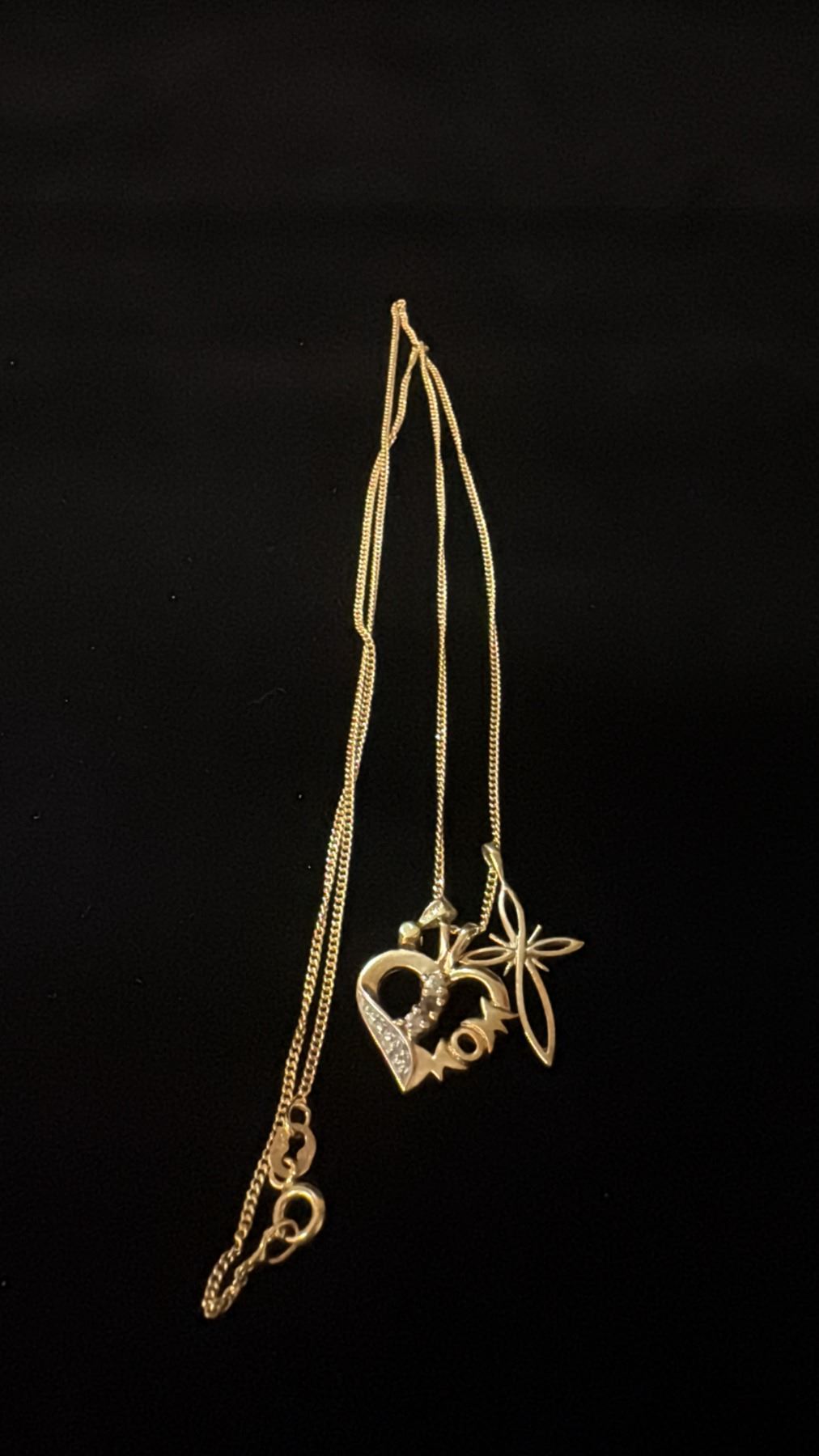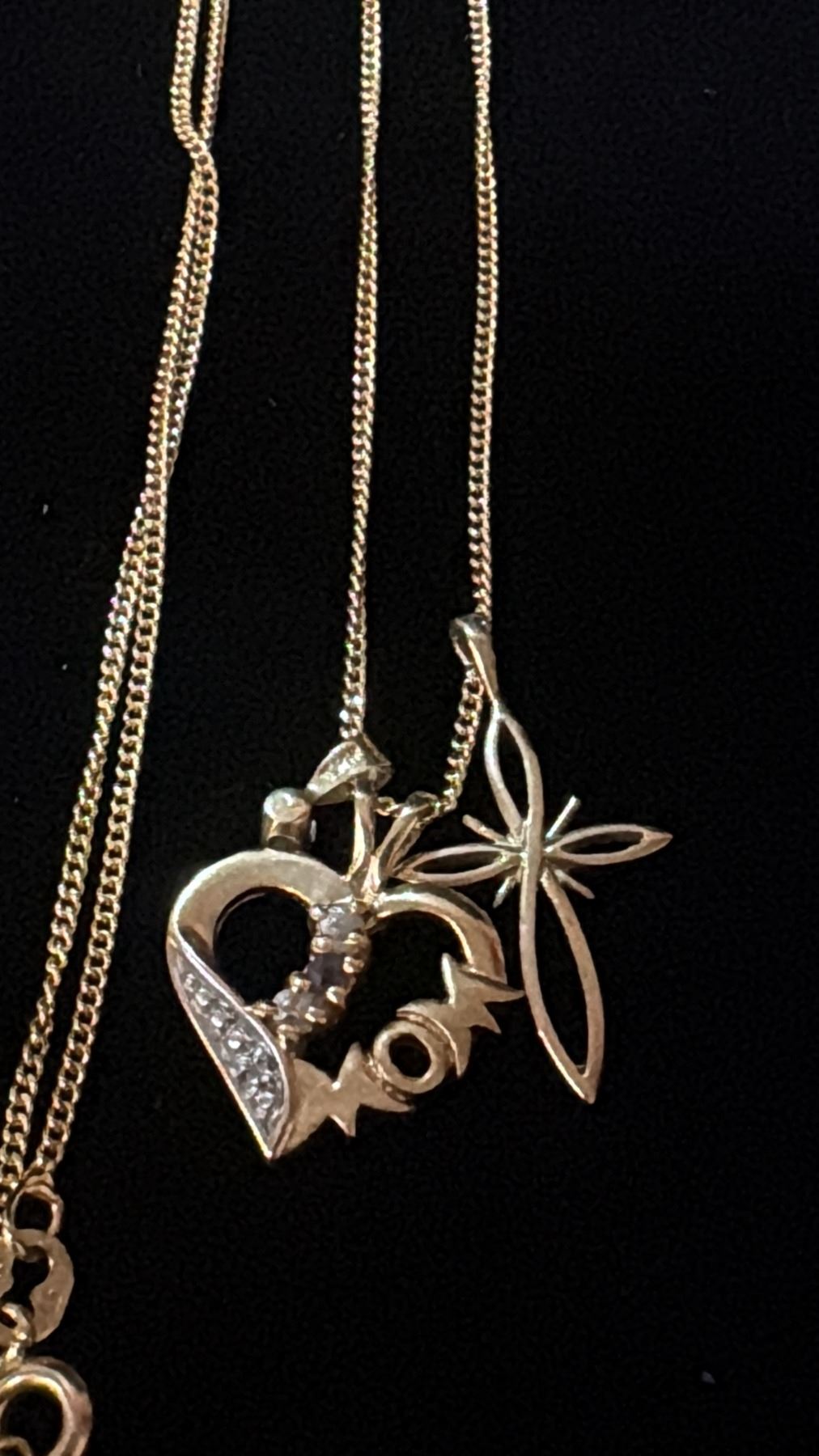 APPROX 14K CHAIN (20") WITH 3 APPROX 10K+ PENDANTS (4.9G)