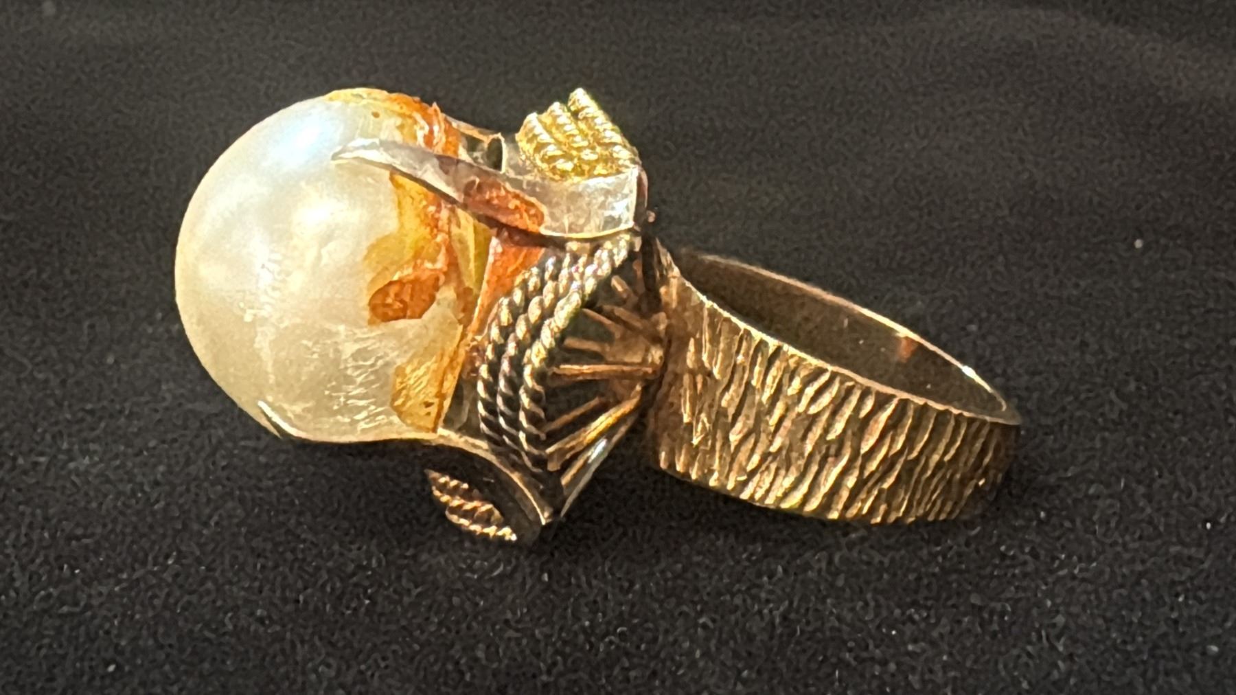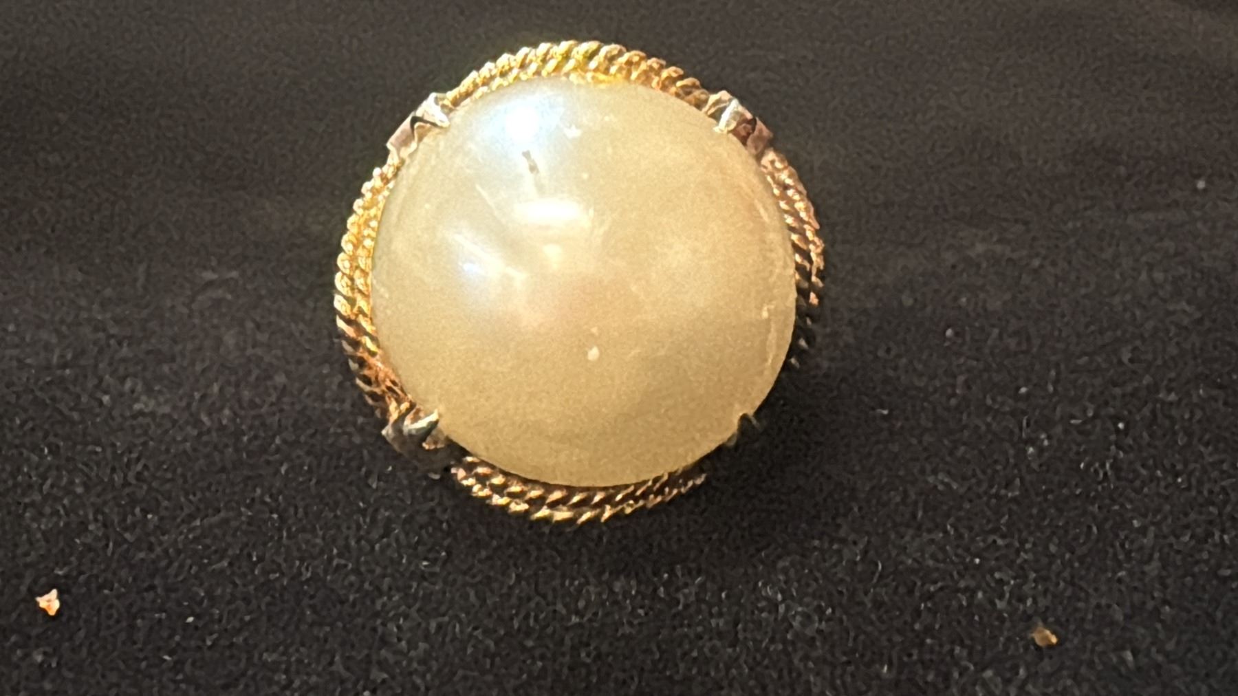 APPROX 14K LADIES RING SET WITH IMITATION PEARL (14.3G)