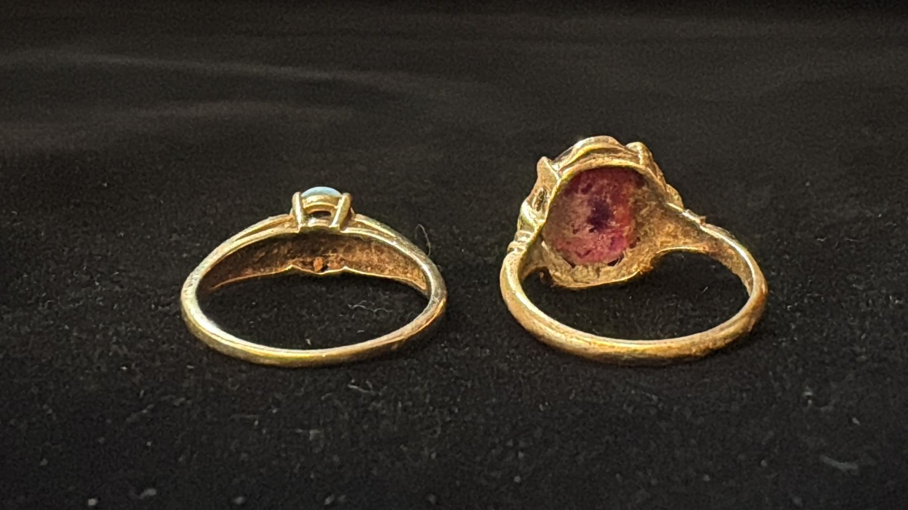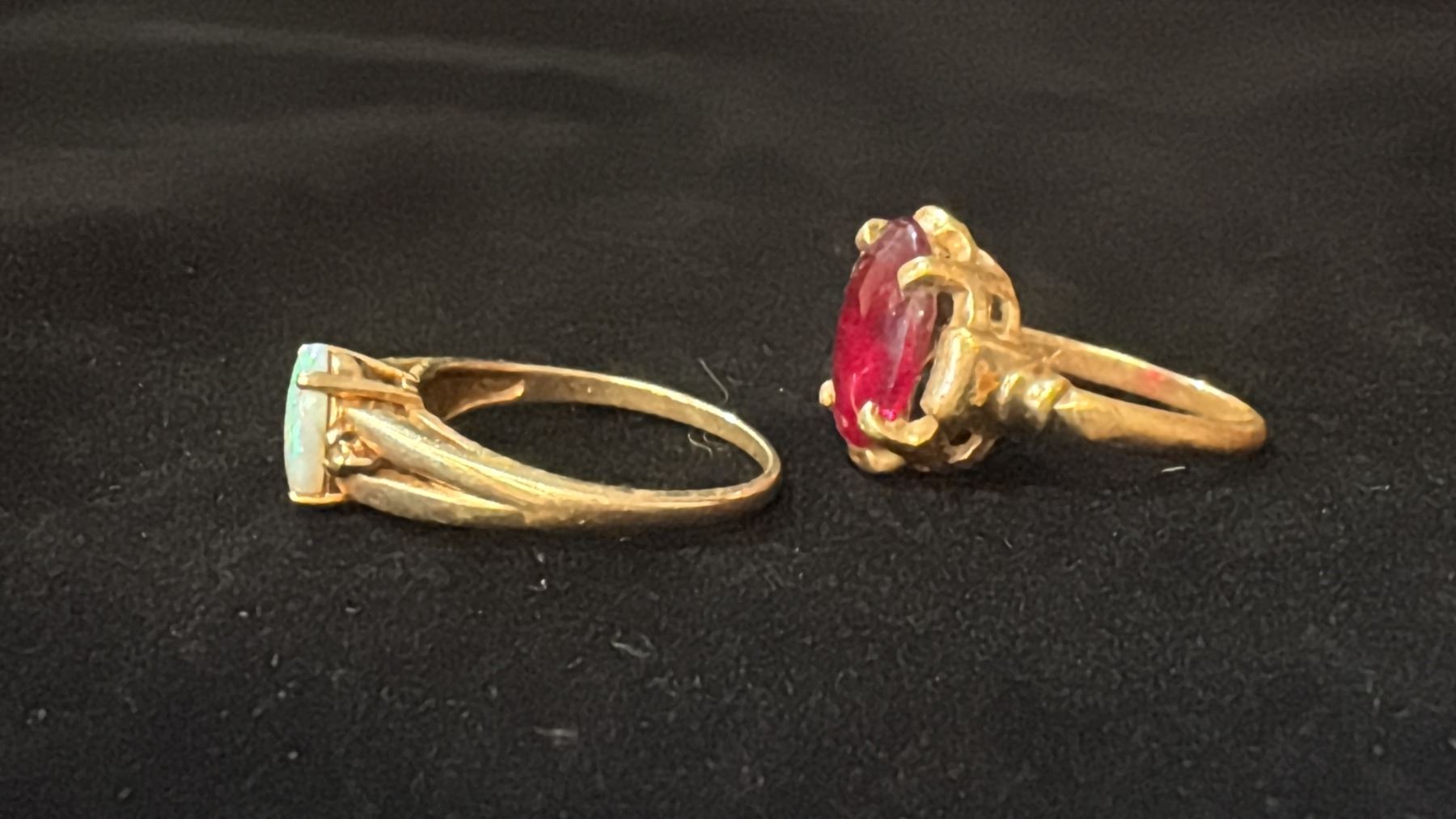 APPROX 14K LADIES RING SET WITH OPAL AND DIAMONDS & APPROX 10K LADIES RING SET WITH RED