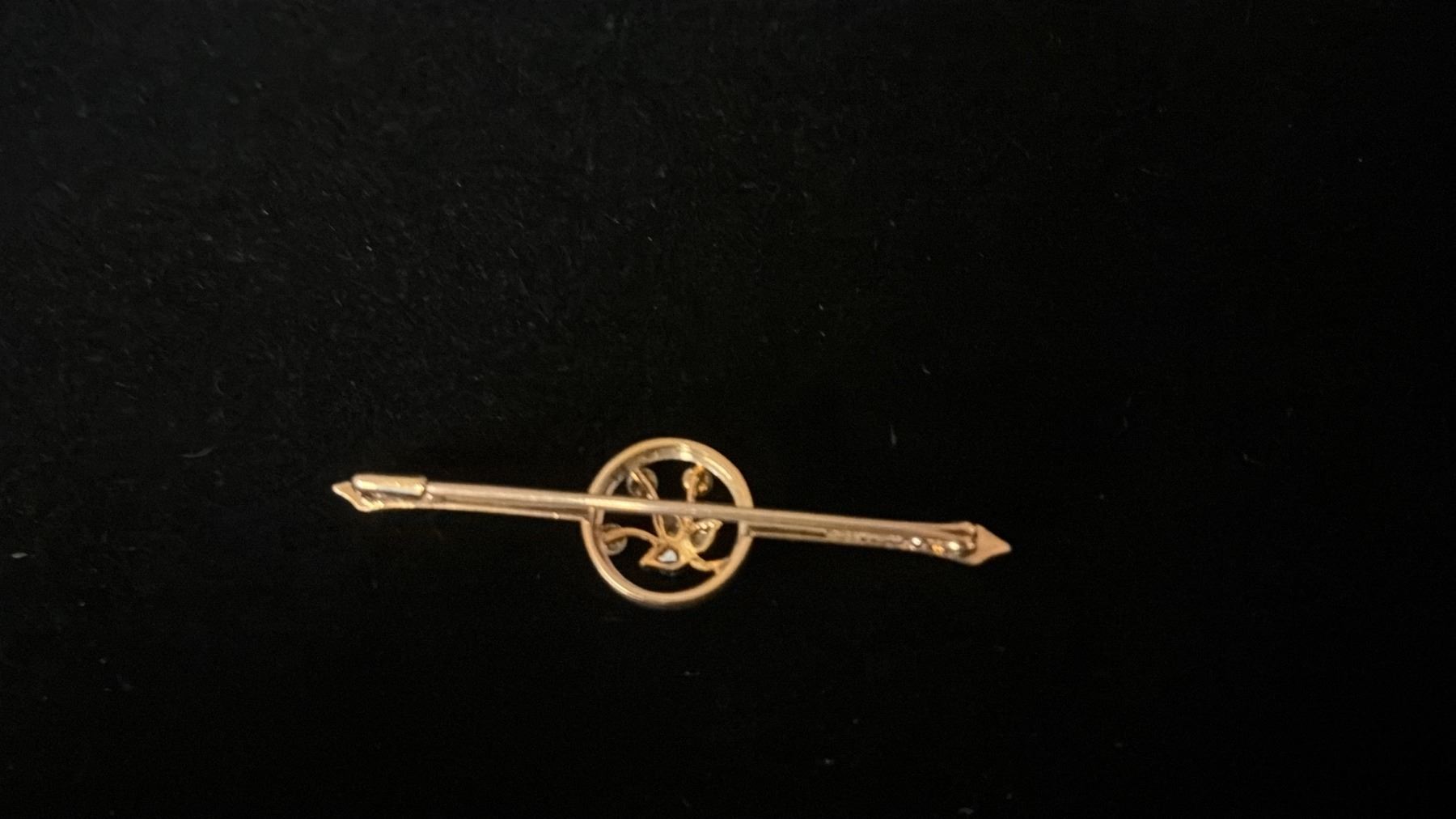 APPROX 14K & PLATINUM BROOCH SET WITH DIAMOND & PEARLS (3.6G)