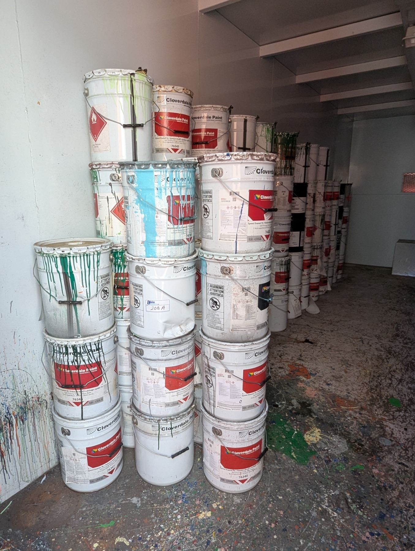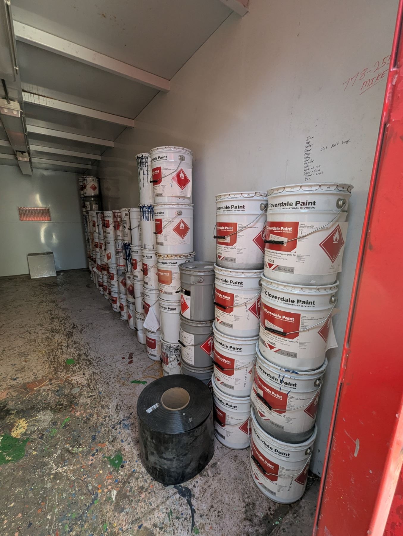 APPROX 150 - 5 GALLON CONTAINERS OF ASSORTED CLOVERDALE INDUSTRIAL PAINT