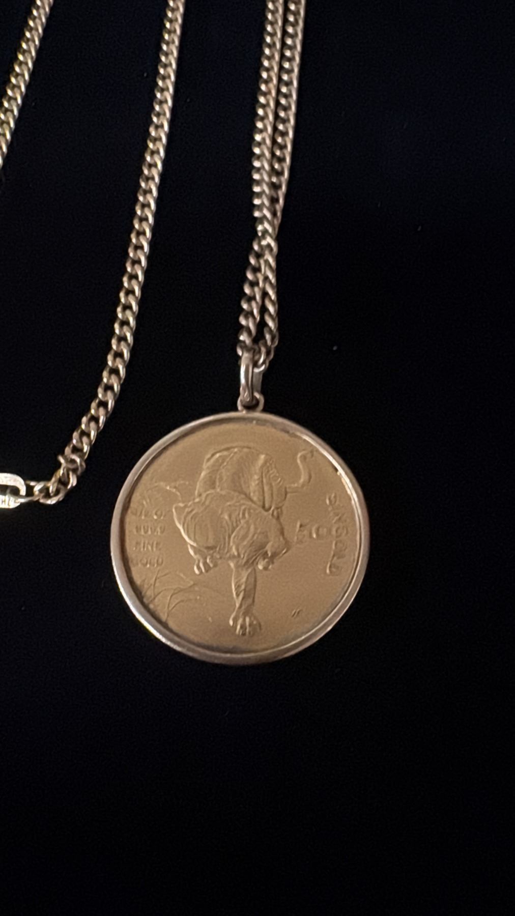 APPROX 18K CHAIN (28") WITH APPROX 18K PENDANT SET WITH 1986 SINGAPORE GOLD COIN (26.1G)