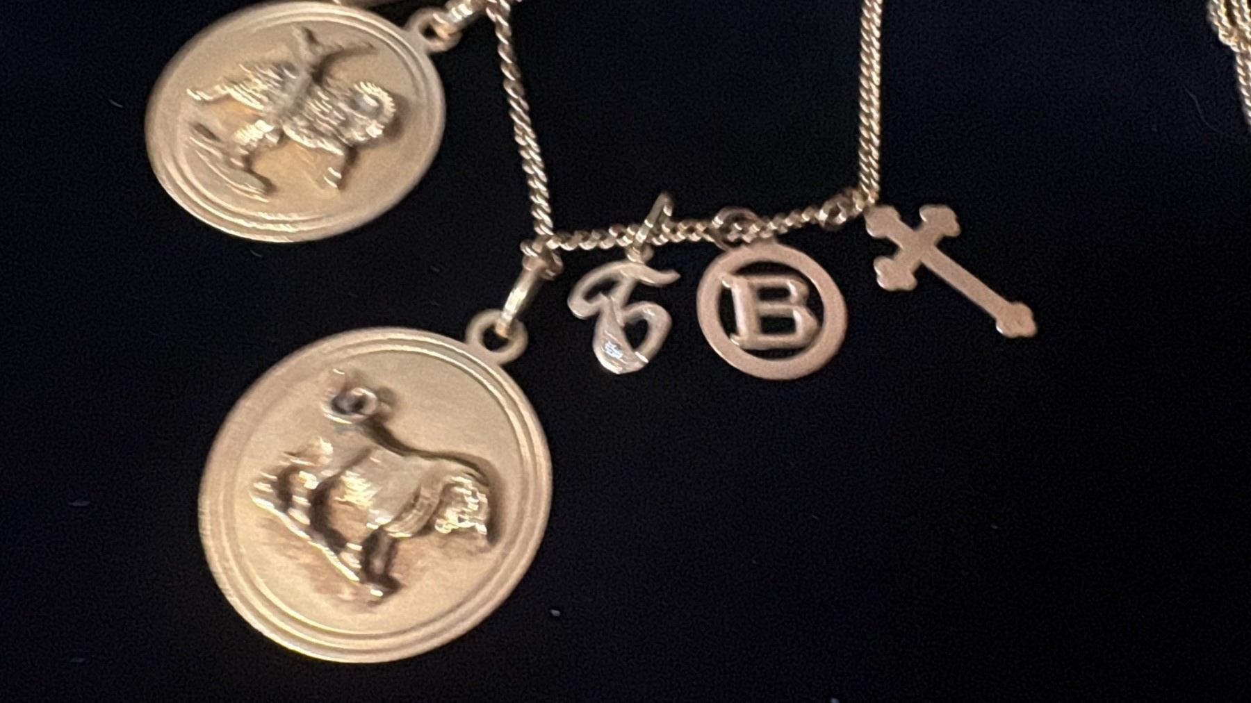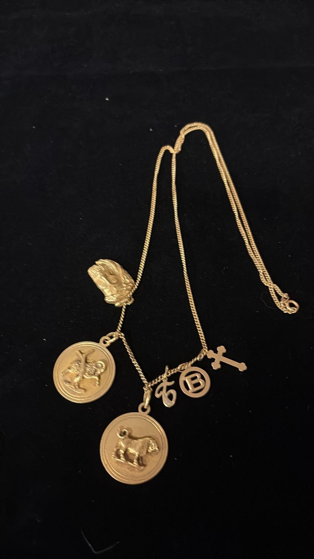 APPROX 18K CHAIN (28") WITH FOUR APPROX 14K+ PENDANTS (36.3G)
