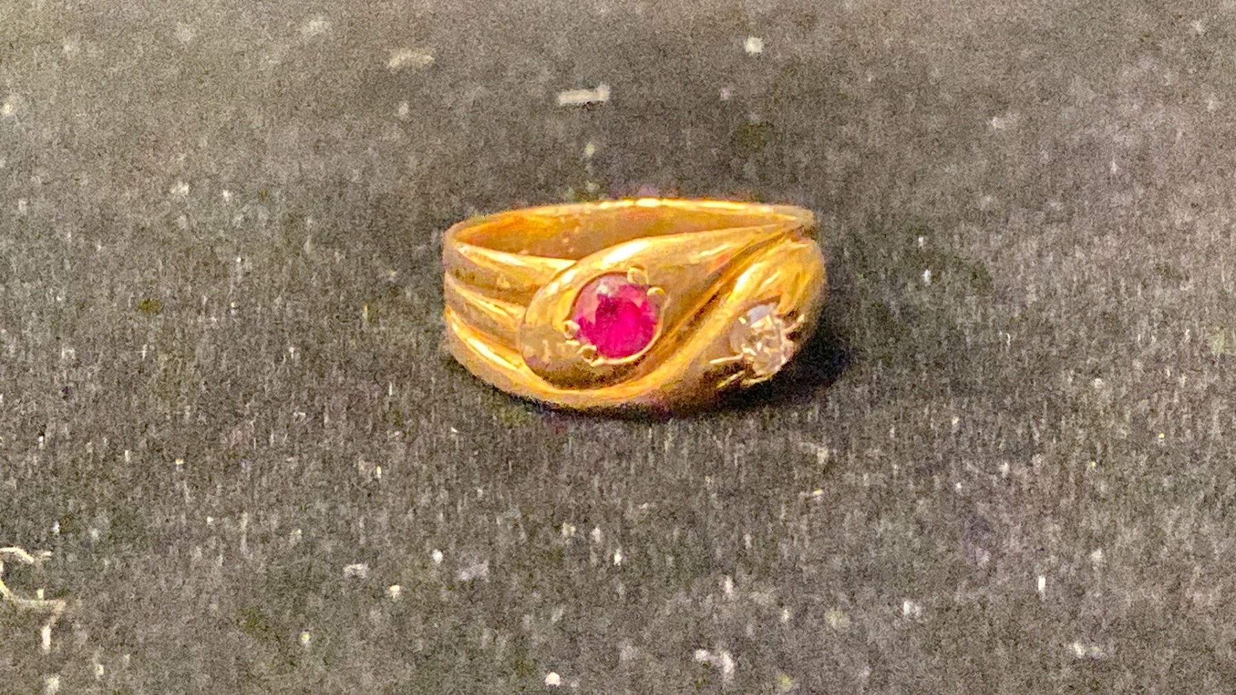 APPROX 18K LADIES RING SET WITH RUBY & DIAMOND (.15CT, 4G)