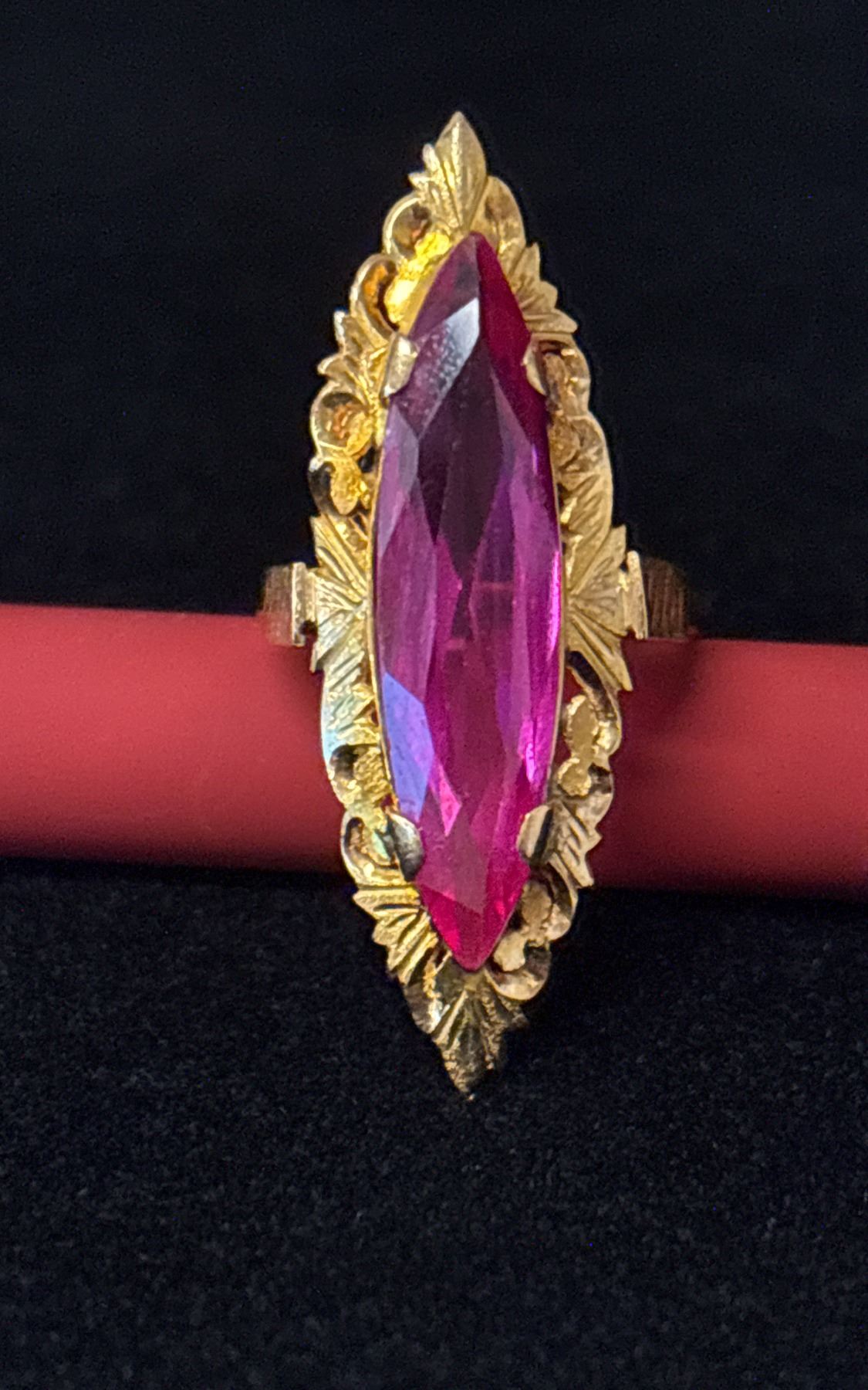 APPROX 22K LADIES RING SET WITH RED STONE (4.3G)