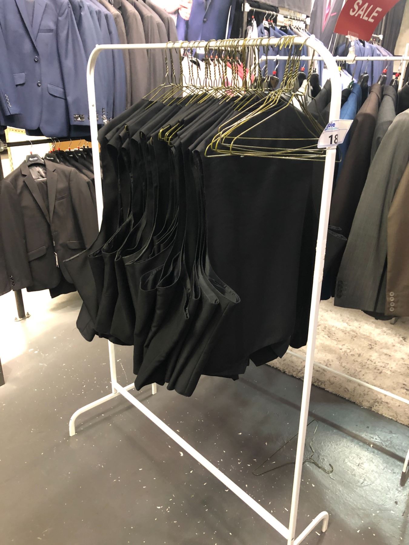 APPROX 25 BLACK DRESS VESTS INCLUDING RACK