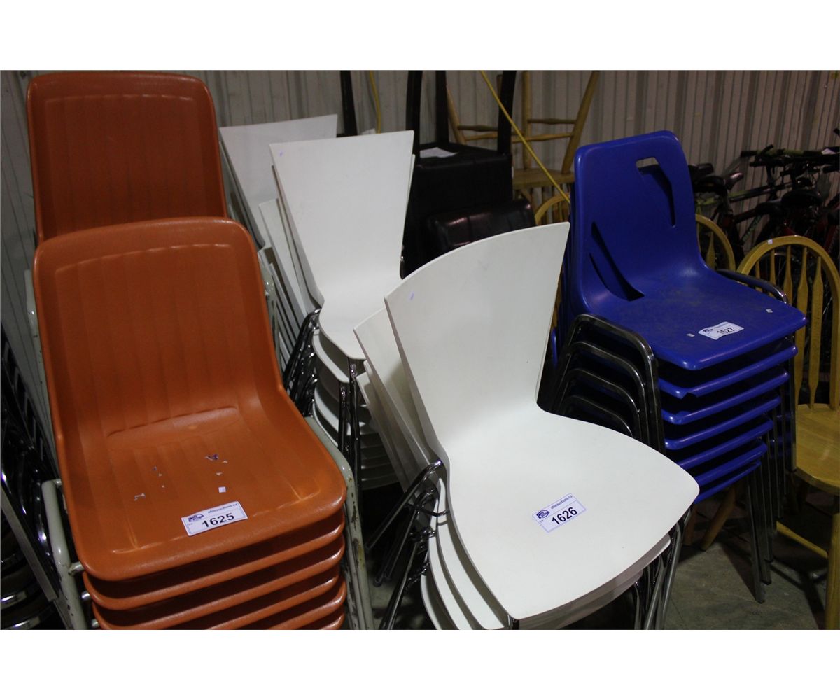 APPROX. 27 WHITE PLASTIC STACKING CHAIRS