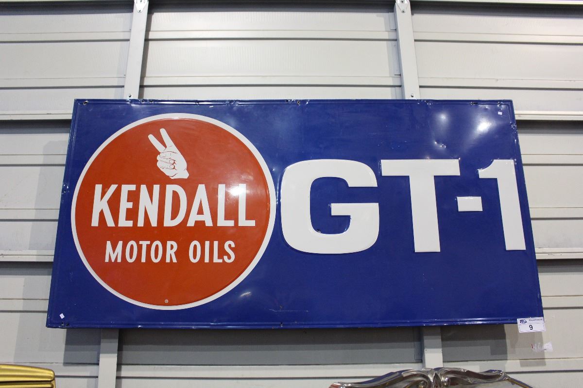 APPROX 3' X 6' VINTAGE METAL KENDALL MOTOR OILS GT-1 COLLECTORS SIGN