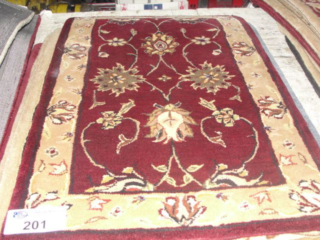 APPROX 3'X2' WOOL PILE FLORAL PATTERN THROW RUG