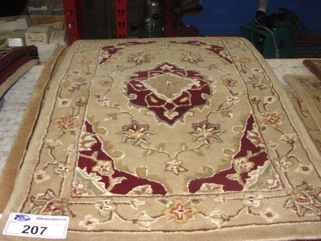 APPROX 3'X2' WOOL PILE FLORAL PATTERN THROW RUG