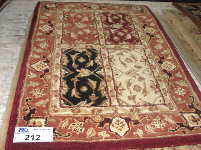 APPROX 3'X2' WOOL PILE FLORAL PATTERN THROW RUG
