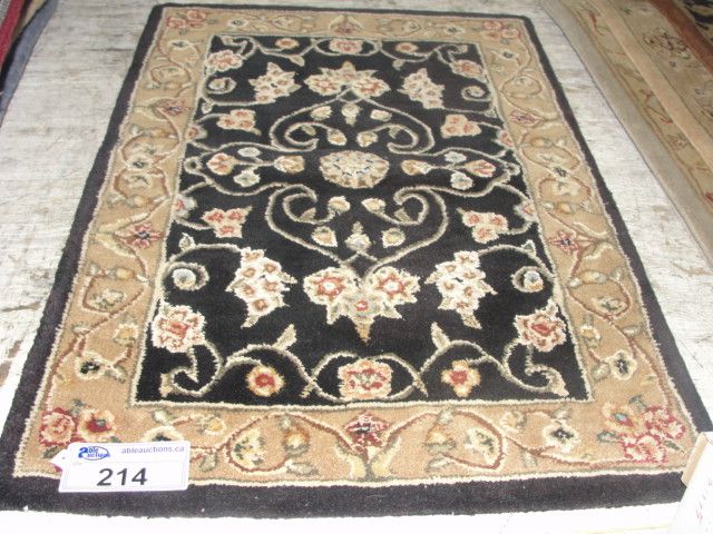 APPROX 3'X2' WOOL PILE FLORAL PATTERN THROW RUG
