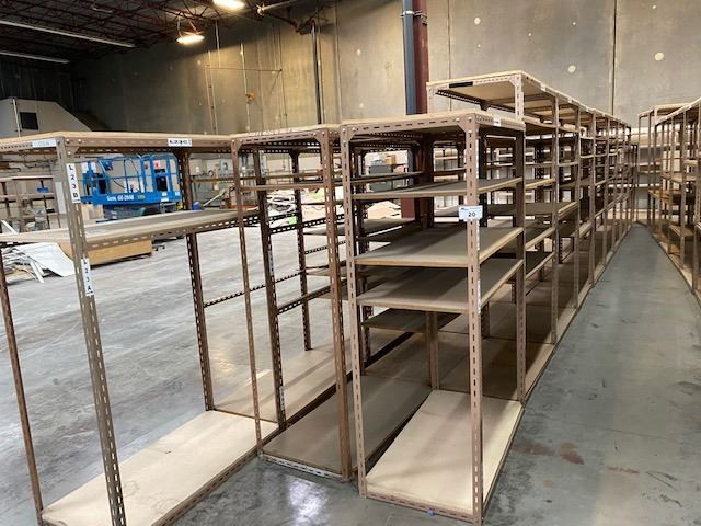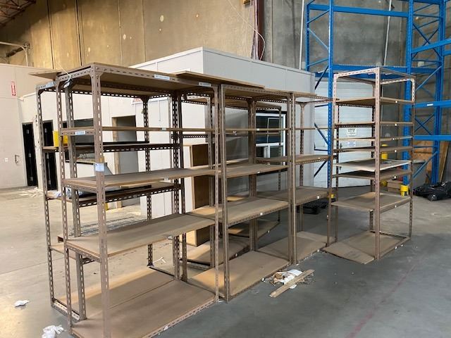 APPROX 31 SECTIONS OF BROWN PARTS SHELVING