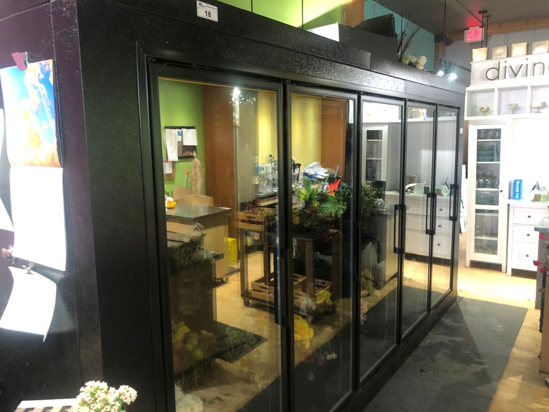 APPROX. 4' X 16' 5 DOOR REFRIGERATED ILLUMINATED FLORAL DISPLAY CASE