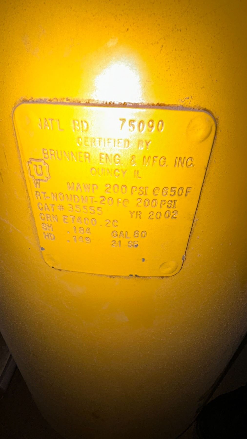 APPROX 50 GALLON AIR TANK 23" DIAMETER X 48"H *REQUIRES TECHNICIAN FOR REMOVAL*