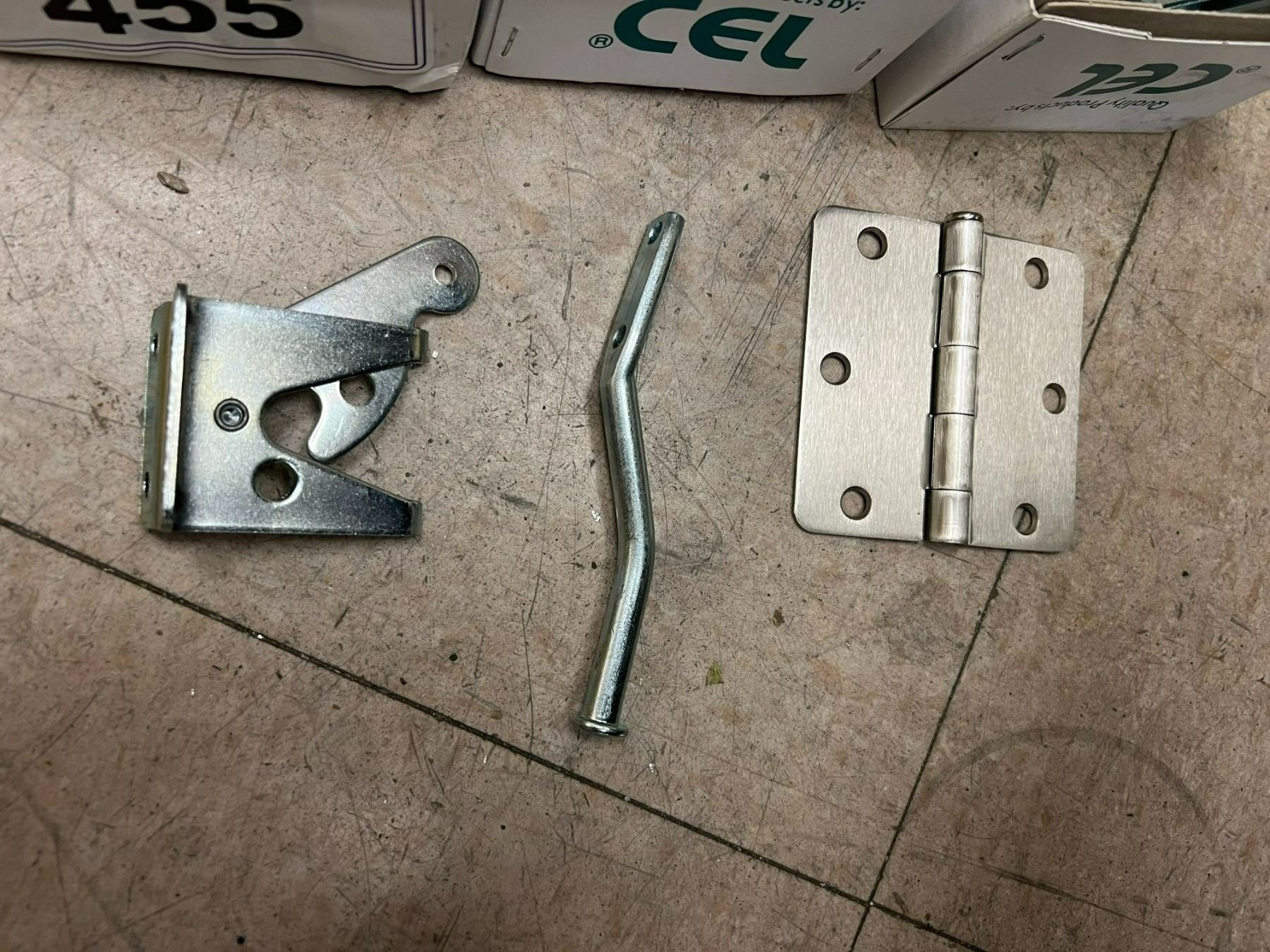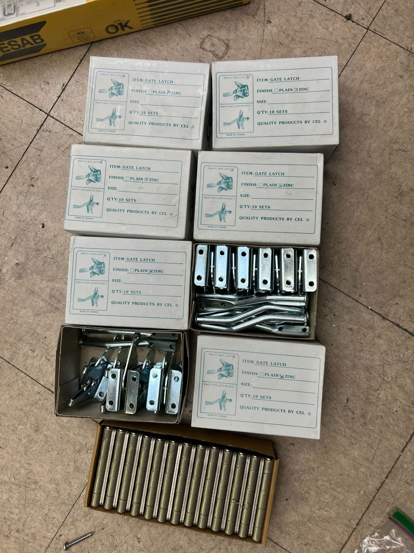 APPROX 56 CEL ZINC GATE LATCHES PLUS 25 X 3 1/2" STAINLESS STEEL HINGES