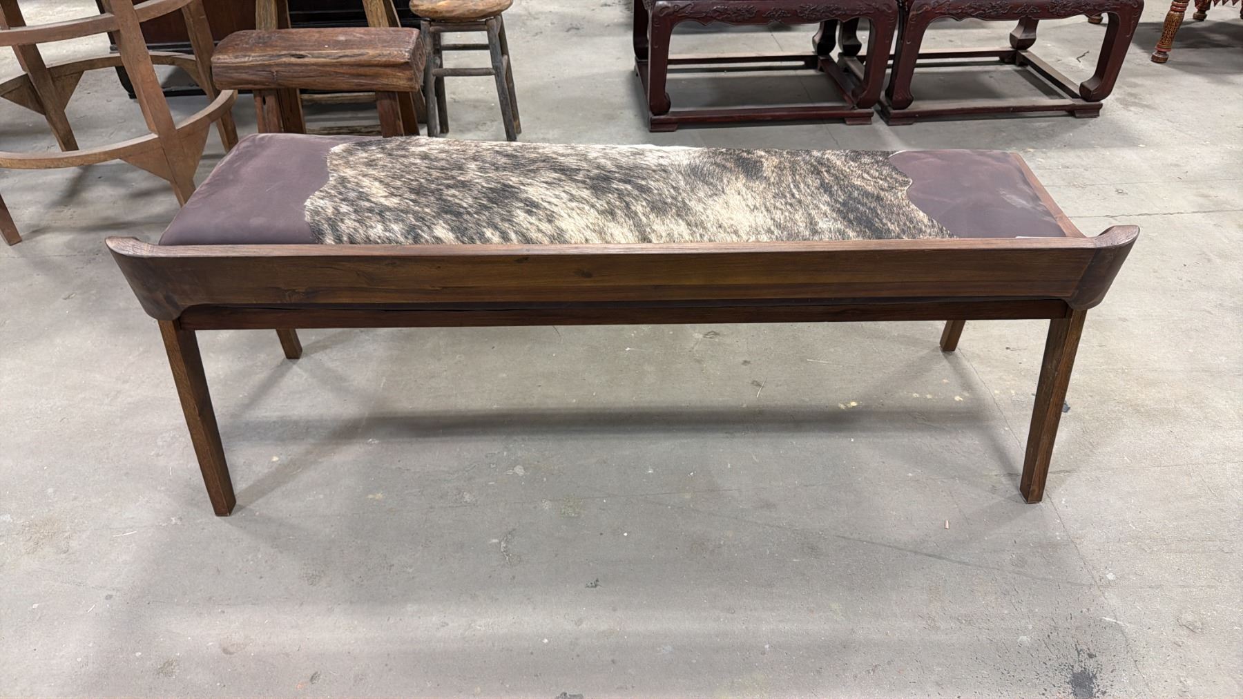 APPROX 59" ANIMAL HIDE UPHOLSTERED WOODEN BENCH SEAT
