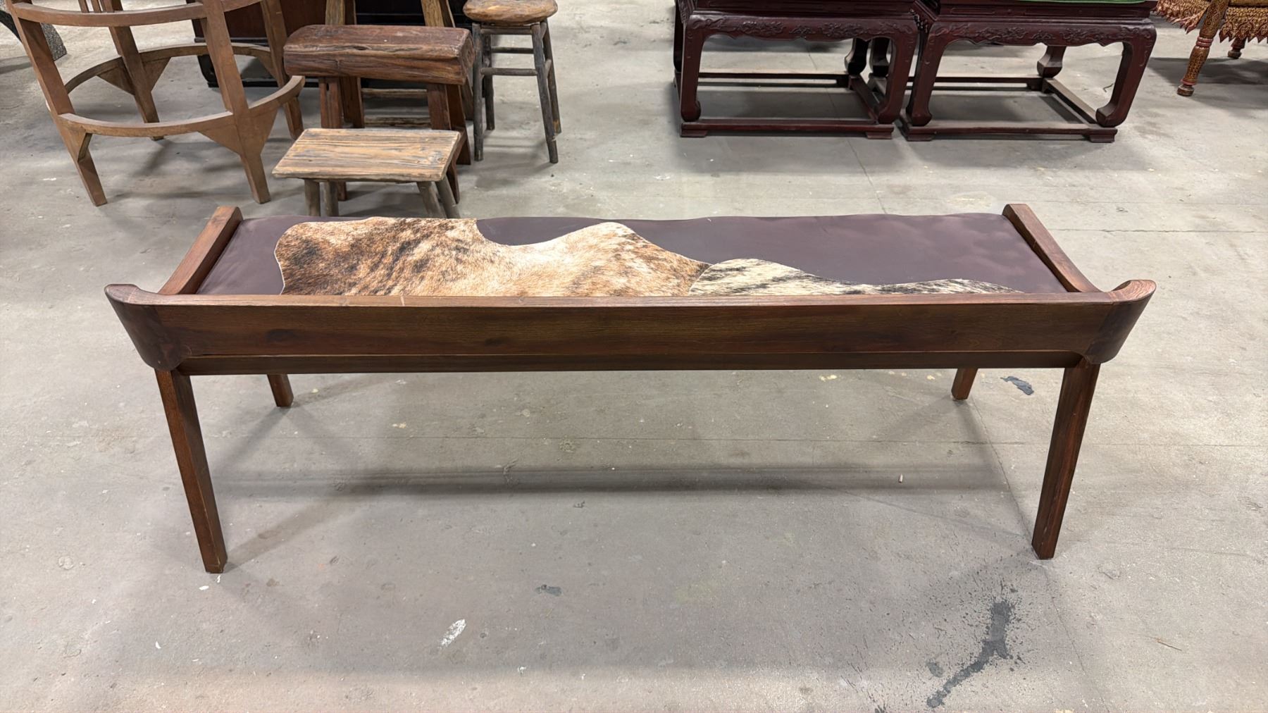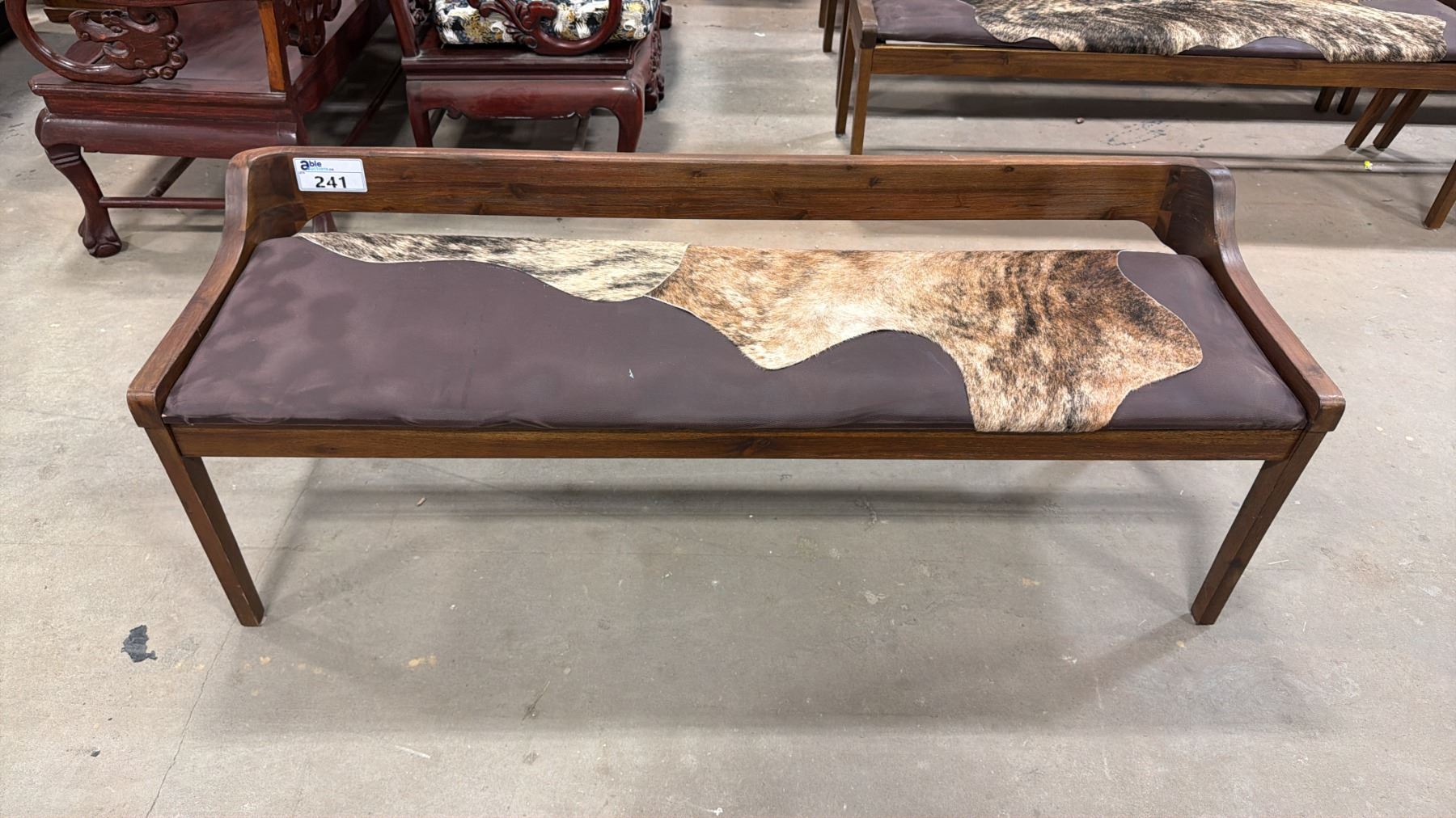 APPROX 59" ANIMAL HIDE UPHOLSTERED WOODEN BENCH SEAT