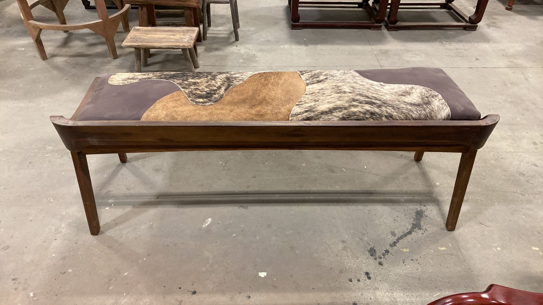 APPROX 59" ANIMAL HIDE UPHOLSTERED WOODEN BENCH SEAT