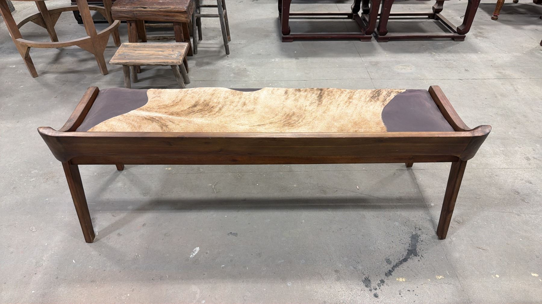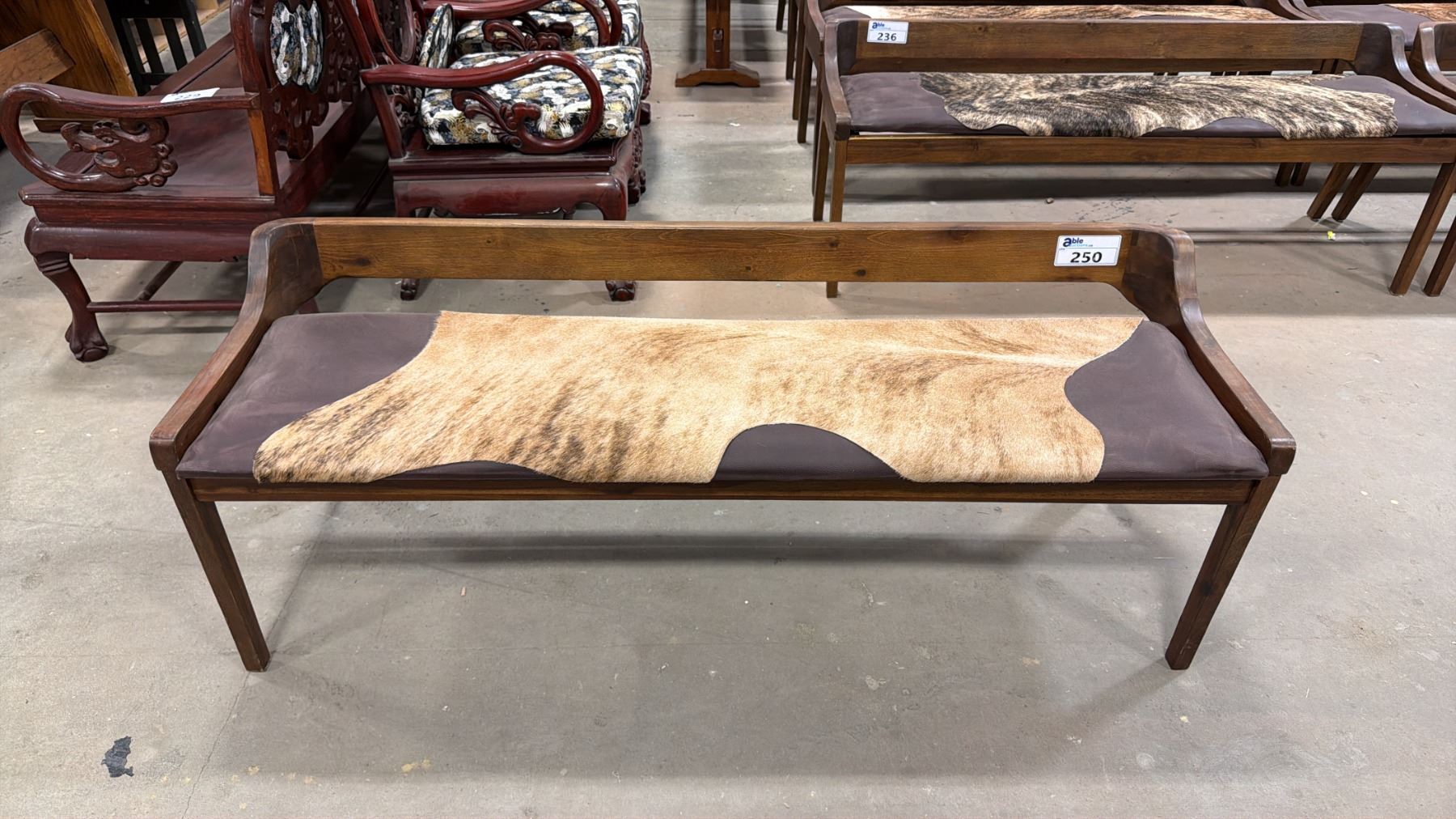 APPROX 59" ANIMAL HIDE UPHOLSTERED WOODEN BENCH SEAT