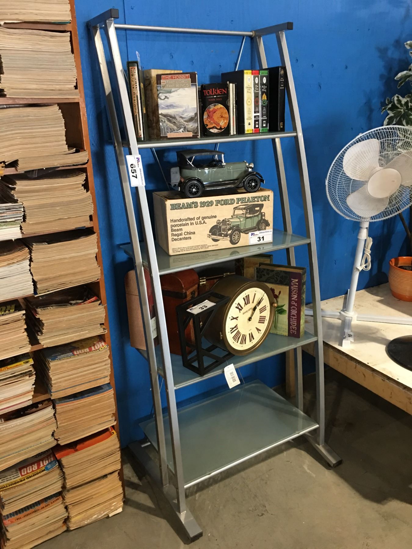 APPROX 6' TALL GLASS & METAL 4 TIER SHELF UNIT