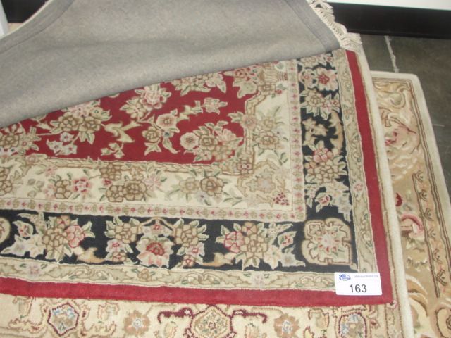 APPROX 6'X4' WOOL PILE AREA RUG - BURGANDY BLUE AND BEIGE