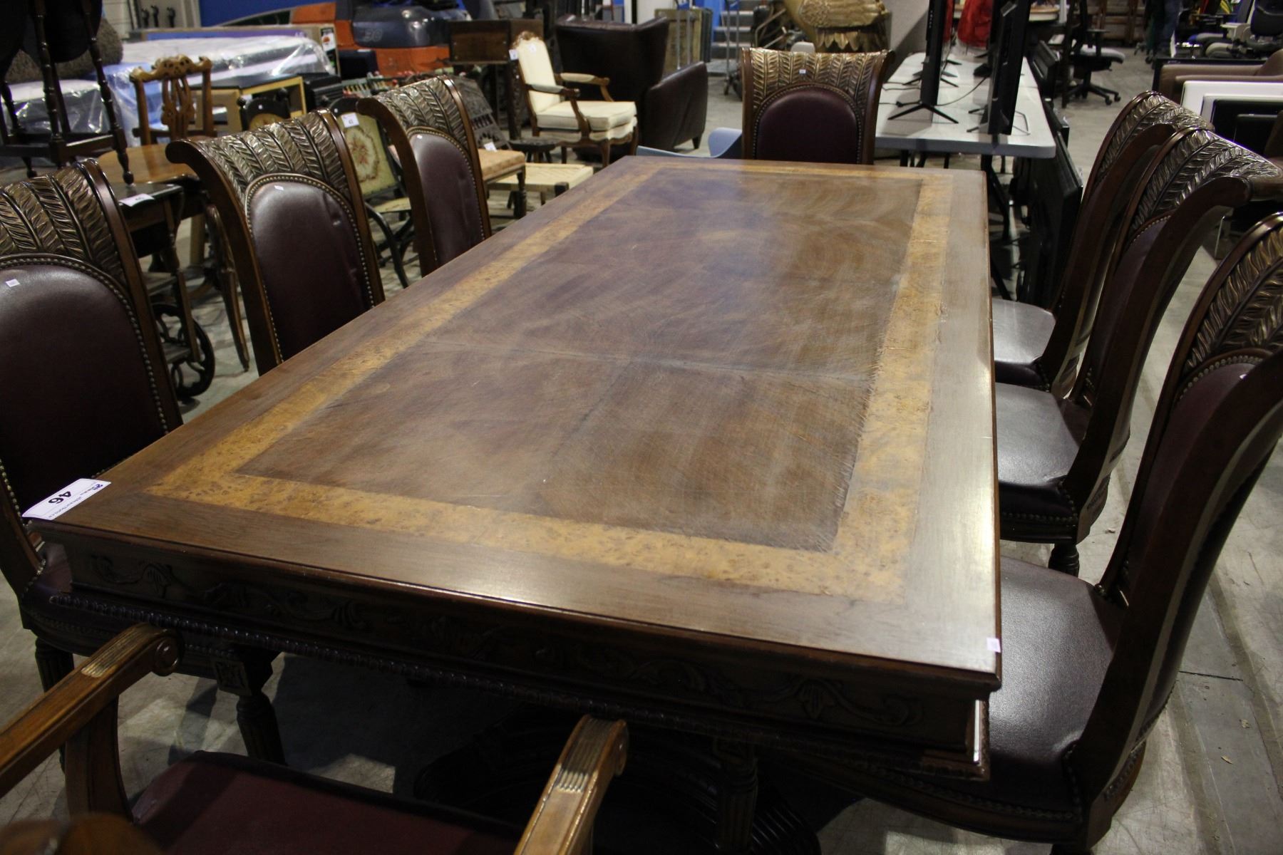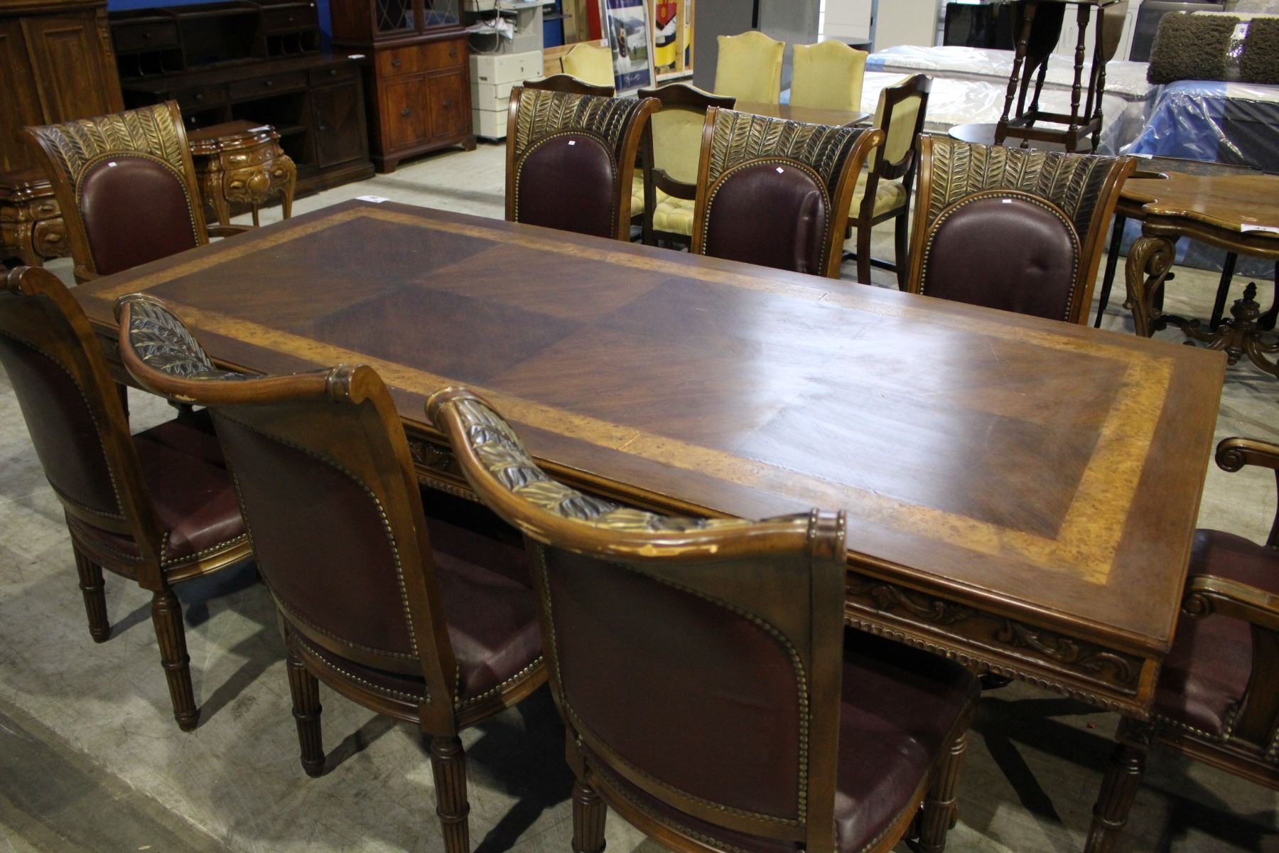 APPROX. 8 FT CARVED DINING TABLE WITH EIGHT CHAIRS