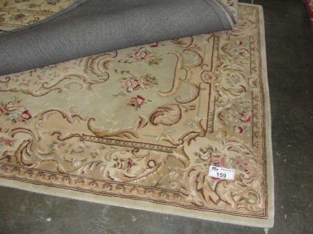 APPROX 8'X5' WOOL PILE AREA RUG - BEIGE BROWN PINK FLORAL WITH BEIGE AND BROWN BORDER