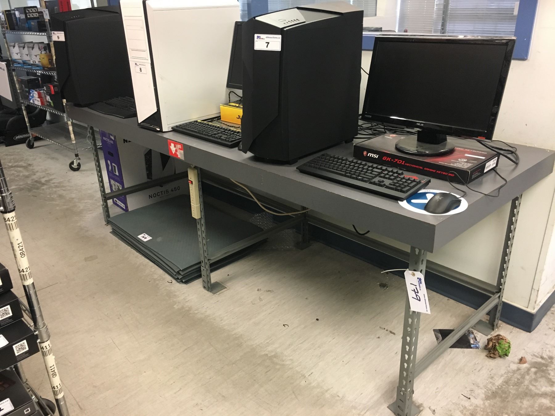 APPROX. 9' LONG METAL FRAME, WOOD TOP WORK BENCH