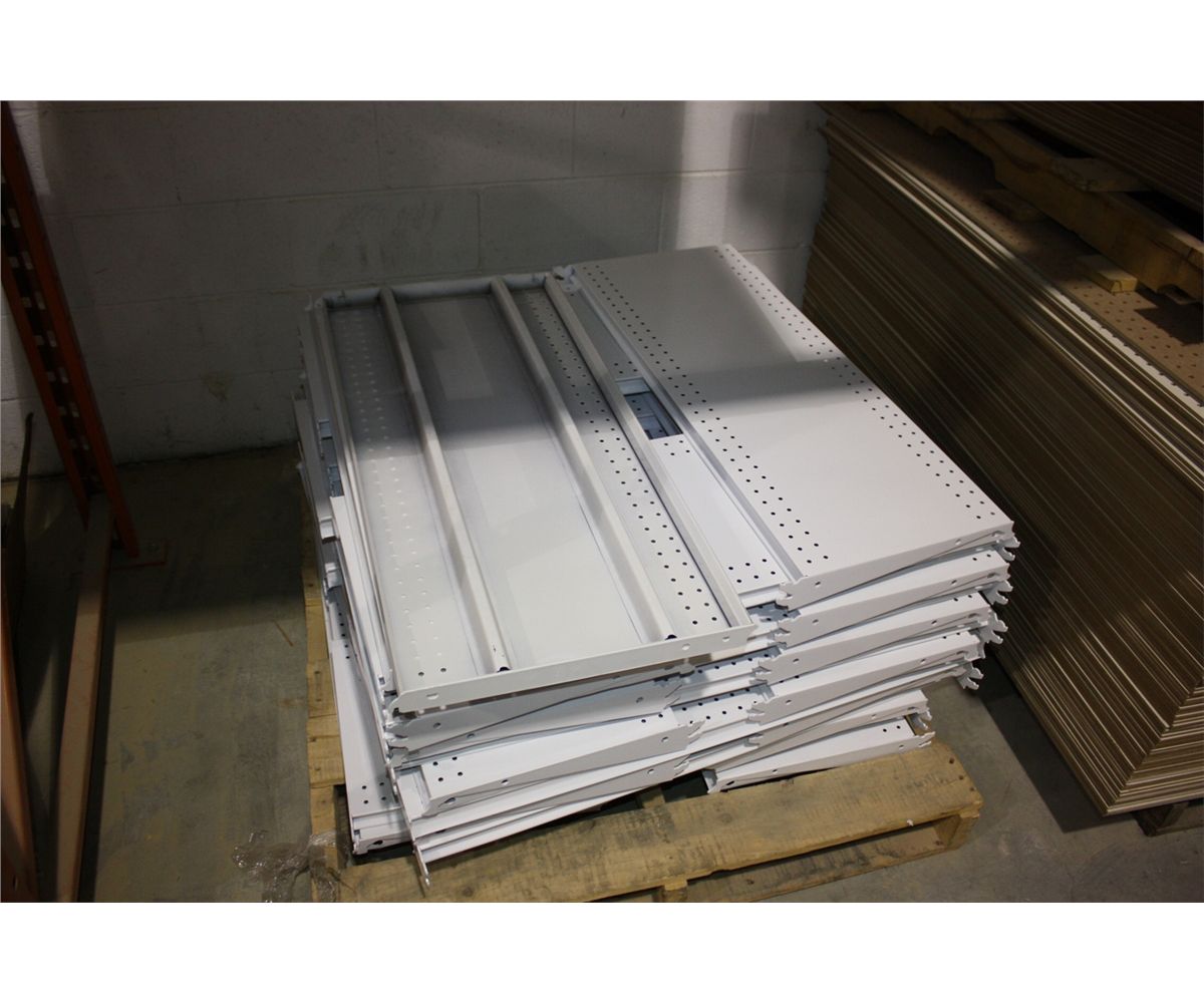 APROX. 16 PALLETS OF WHITE RETAIL DISPLAY SHELVES AND UPRIGHTS