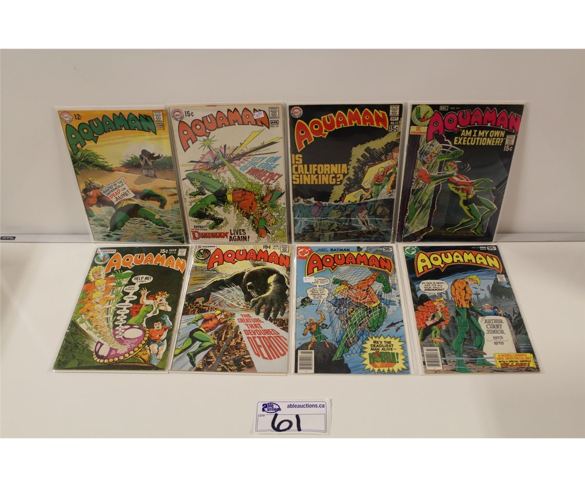 AQUAMAN (1967) #45-62 MID GRADE AVERAGE. INCLUDING #56 1ST APPEARANCE CRUSADE. 8 BOOKS TOTAL.