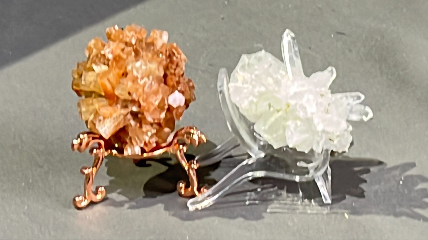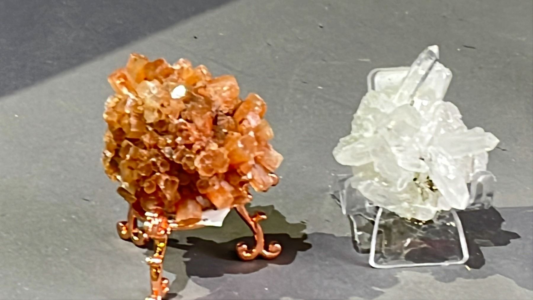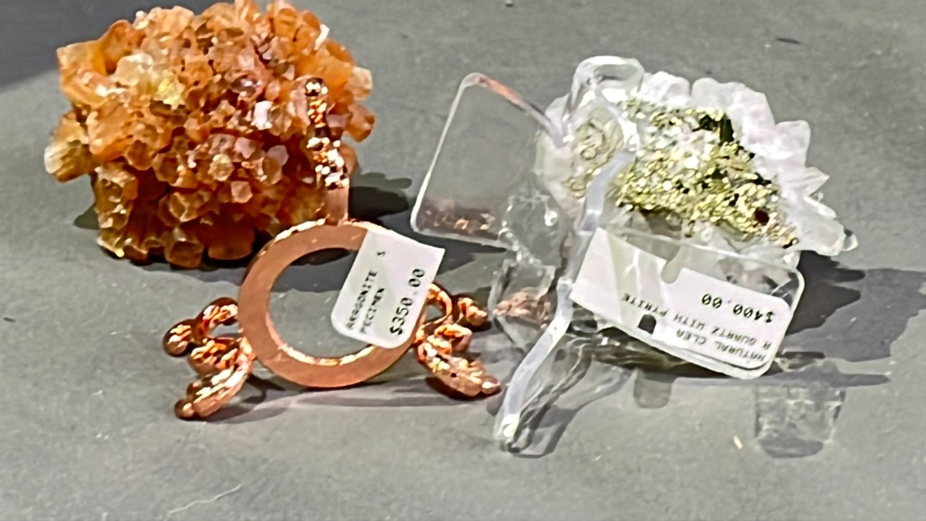 ARAGONITE CLUSTER RETAIL $350, AND CLEAR QUARTZ WITH PYRITE RETAIL $400