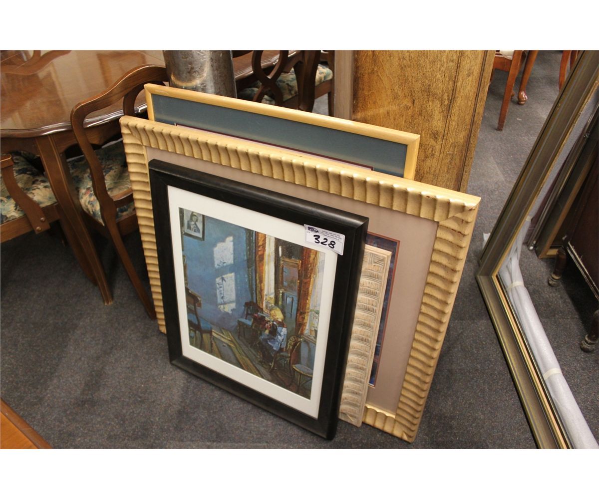 ART COLLECTION - 4 FRAMED PRINTS GIRL IN BLUE ROOM BY ANCHOR & 3 OTHERS