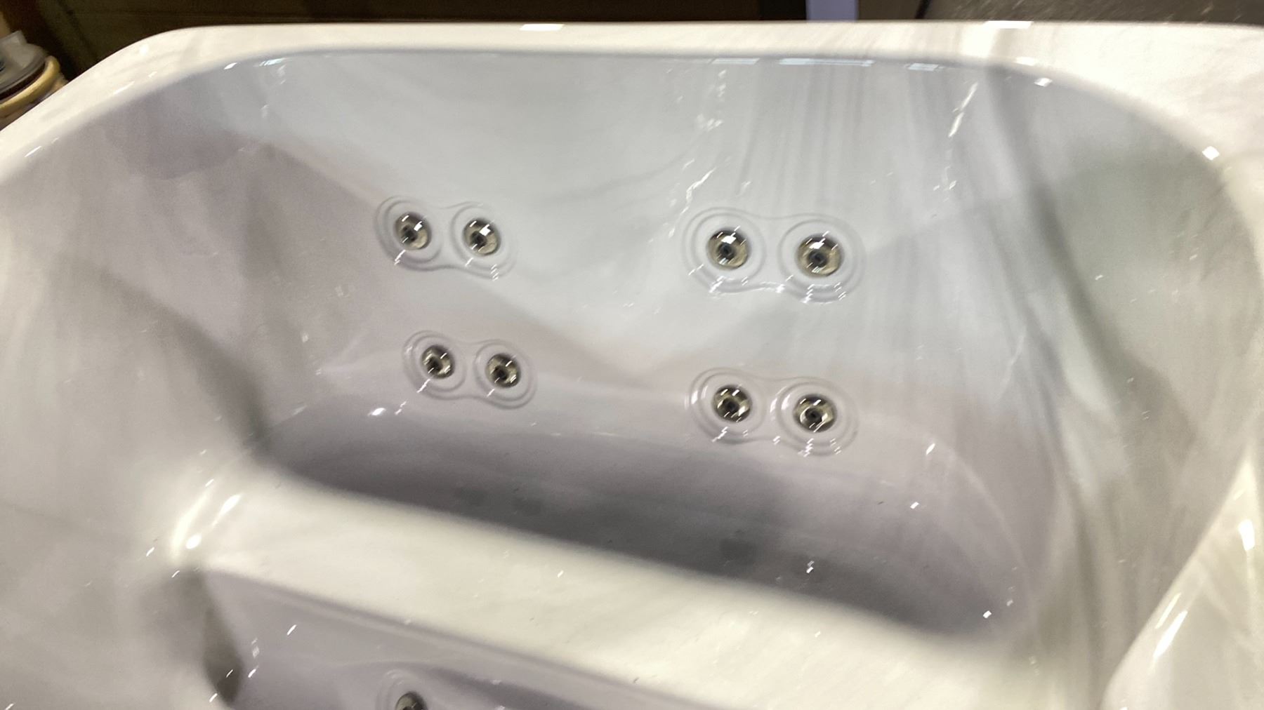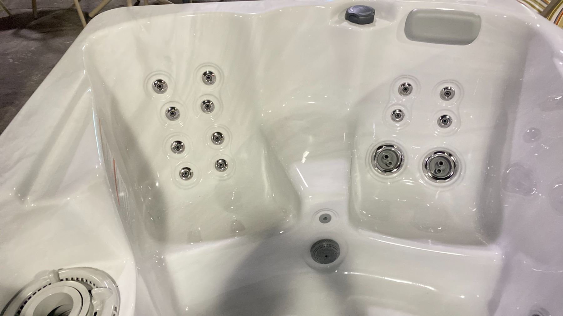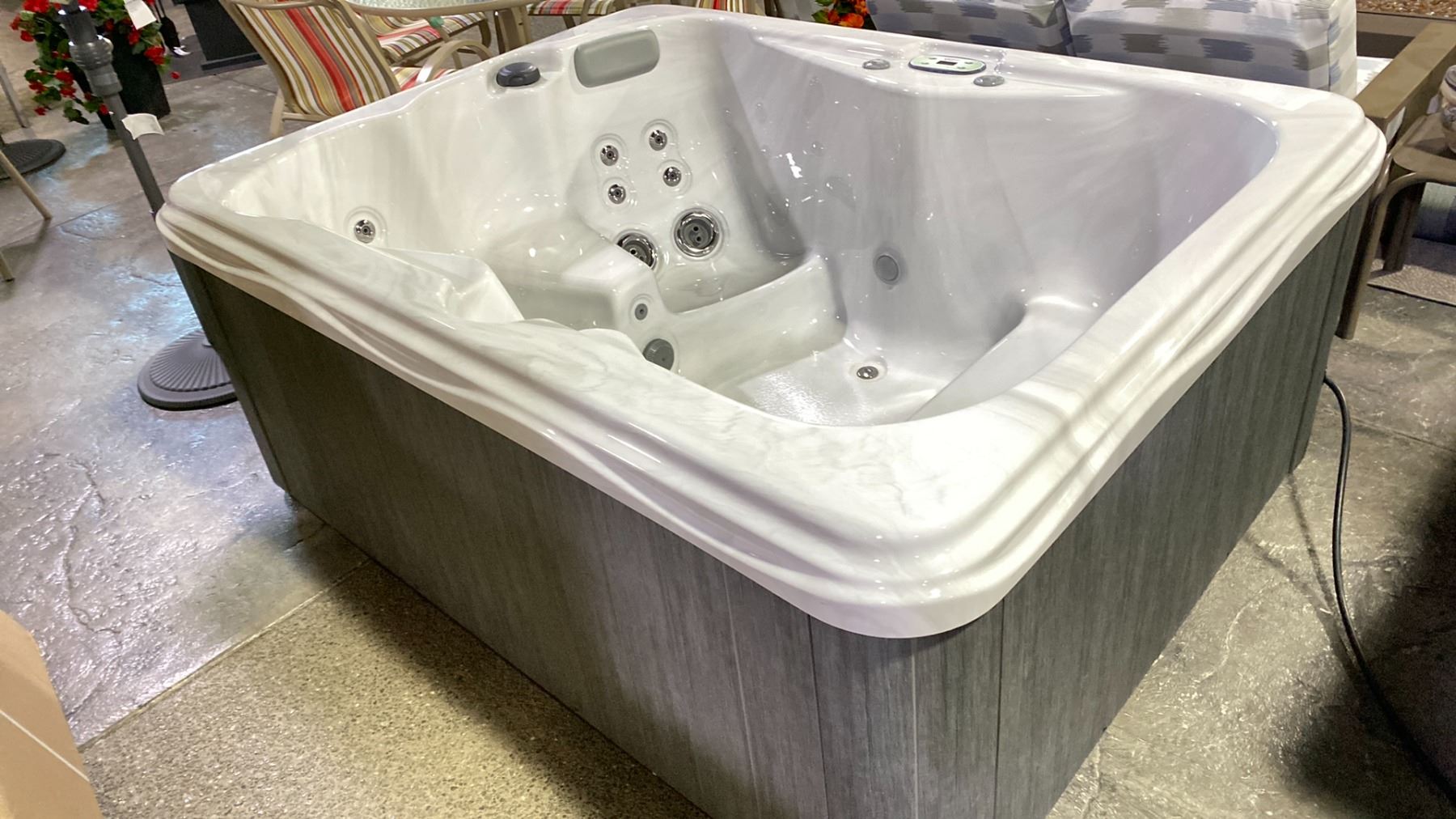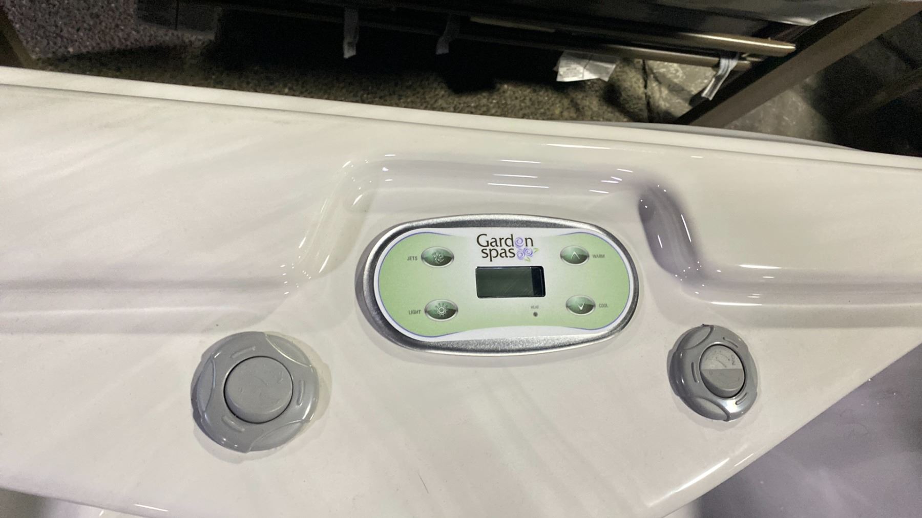 ARTESIAN SPAS MODEL GARDEN SPAS IRIS. 78"X60"X30". 110V. SILVER MARBLE/GREY CABINET. SEATS 4 ADULTS. 205 GALLONS, 27 JETS. DIGITAL CONTROL SYSTEM WITH LCD TOPSIDE, WEIGHS 400 LBS. HTTPS://ARTESIANSPAS.COM/GARDEN-SPAS/IRIS/ COMES WITH NEW IN BOX GREY COVER
