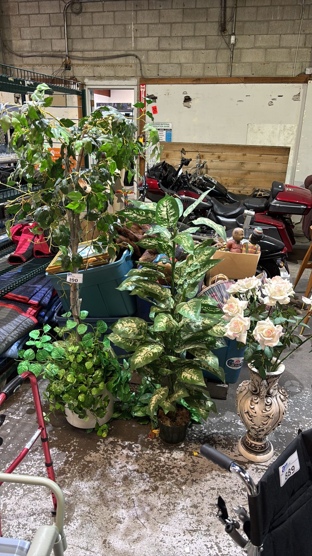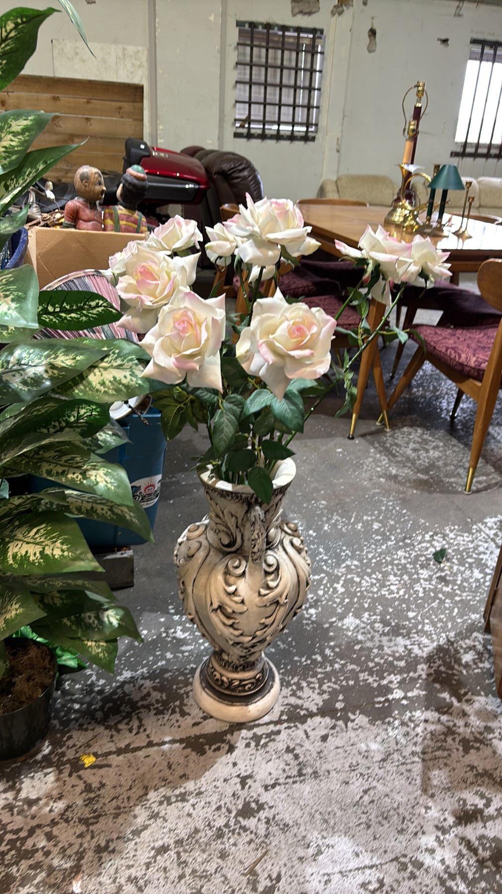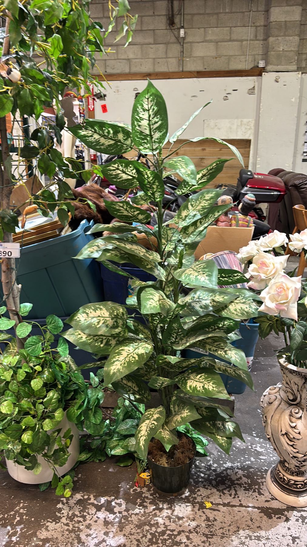 ARTIFICIAL FICUS, ARTIFICIAL DIEFENBACHIA PLANT & VASE OF ARTIFICIAL ROSES