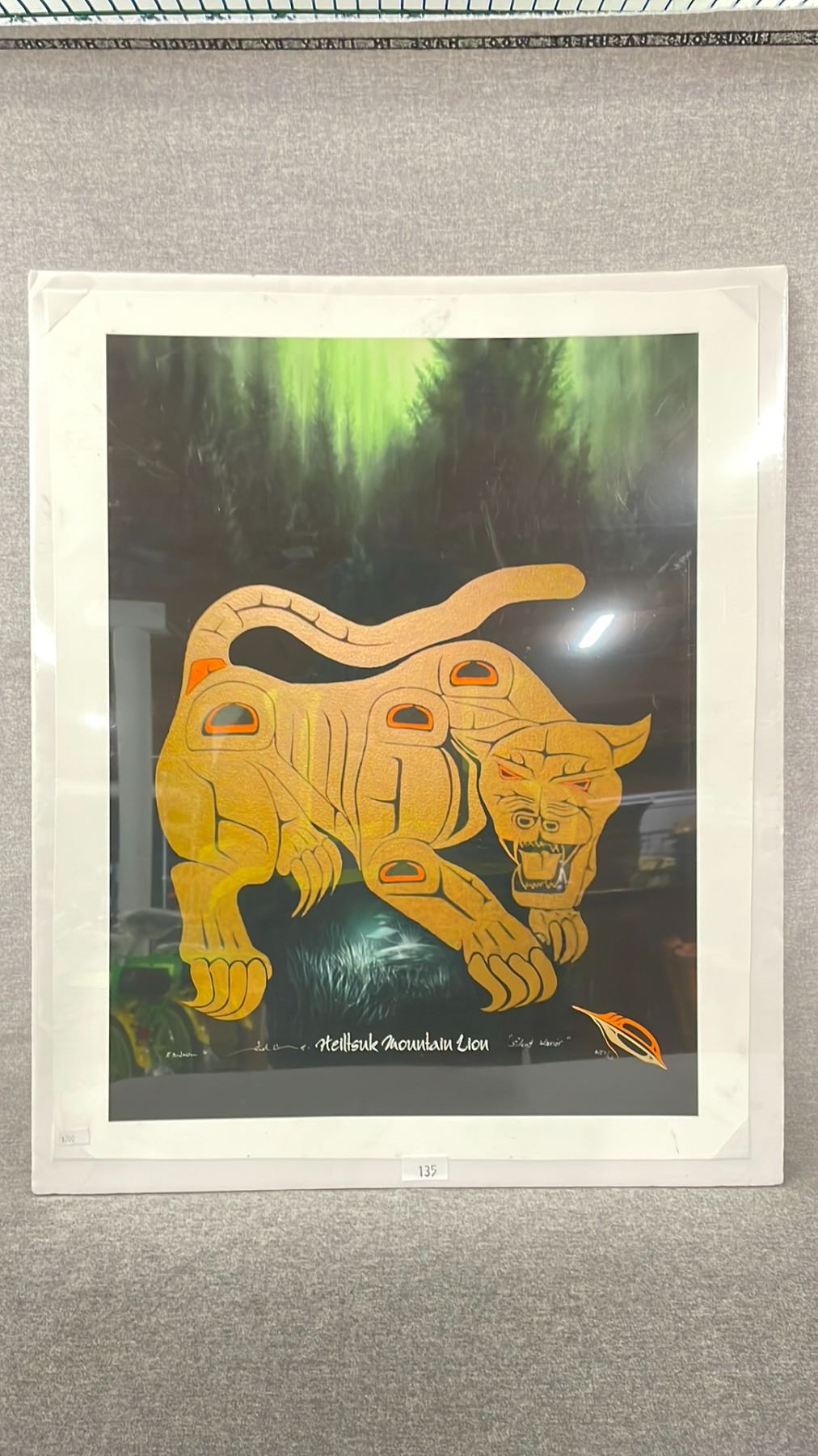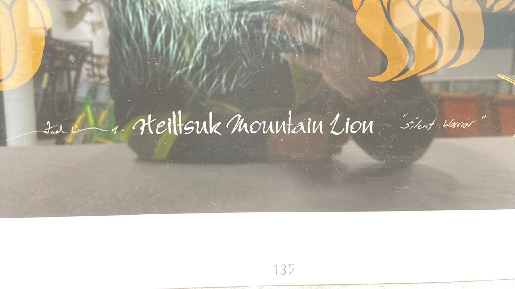 ARTIST PRINT (AP2/25) BY FRED ANDERSON JR. TITLED "HEILTSUK MOUNTAIN LION 'SILENT WARRIOR'" 21" X 26.5"