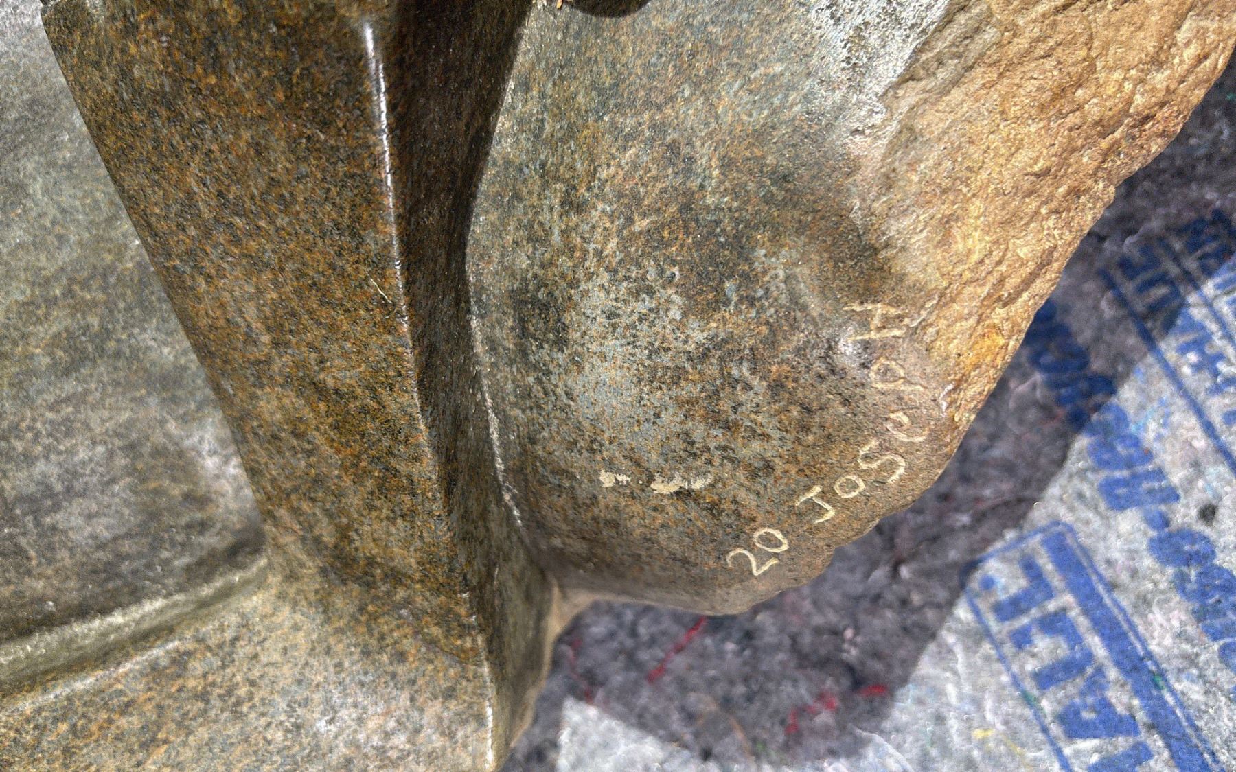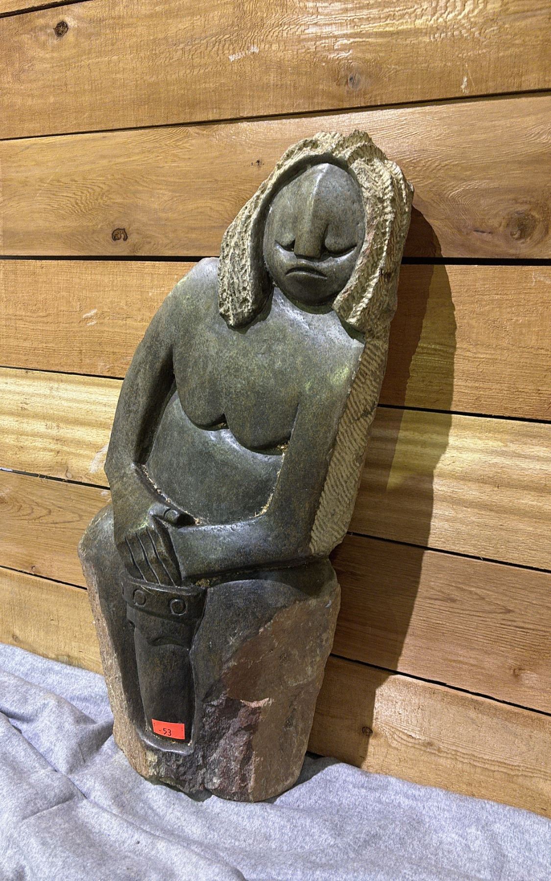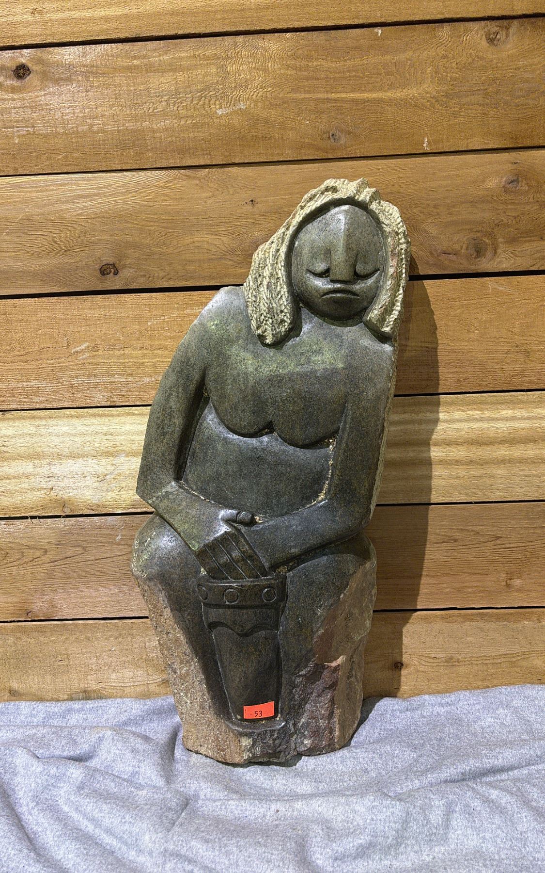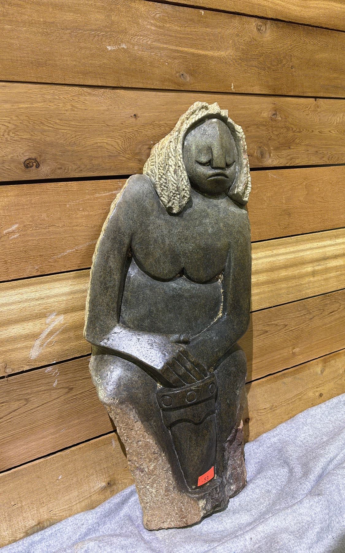 ARTIST SIGNED AFRICAN STONE SCULPTURE 27" TALL