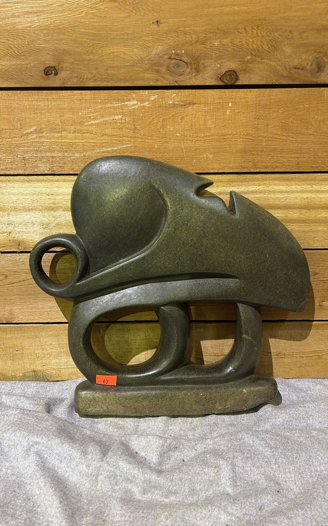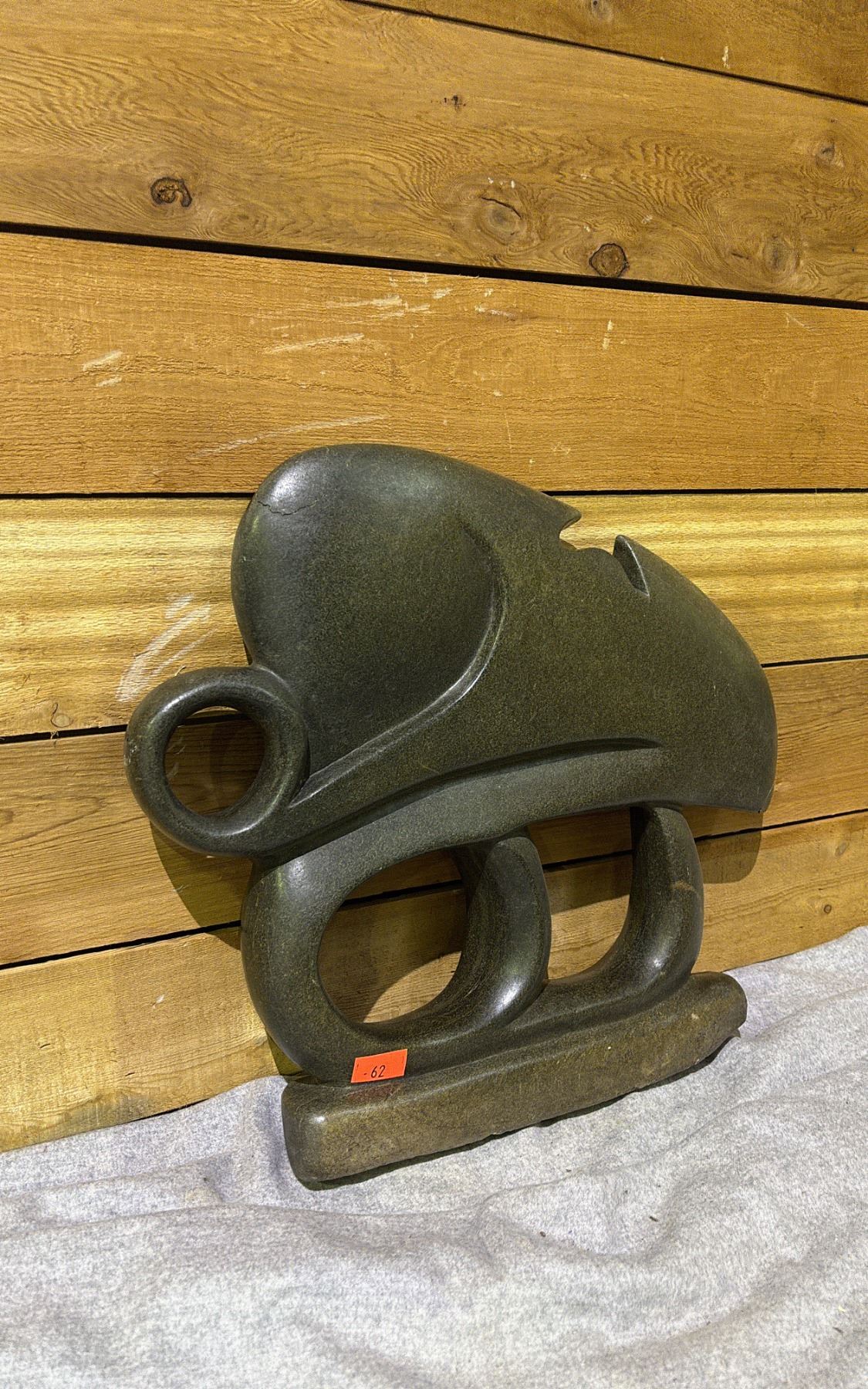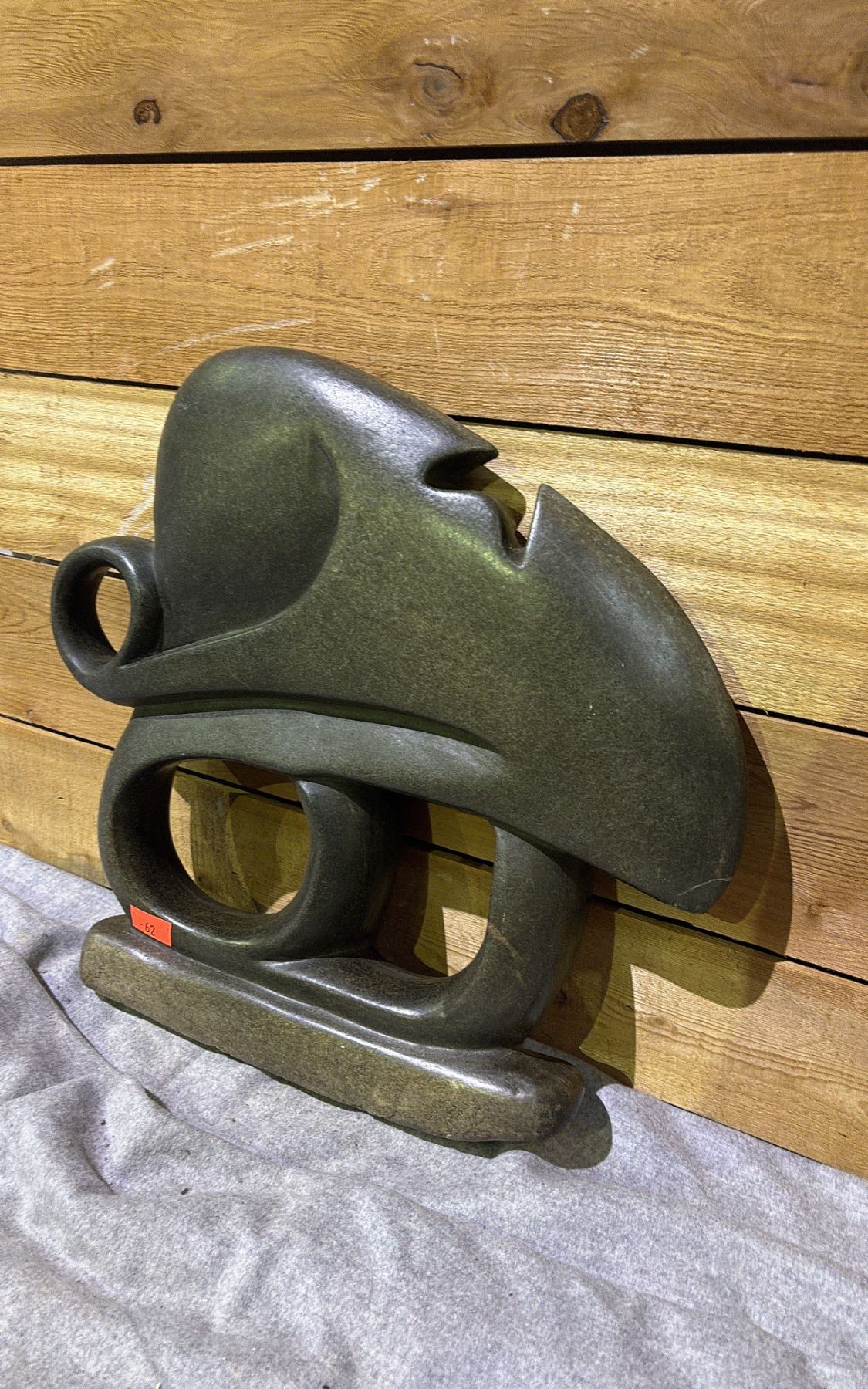 ARTIST SIGNED ELEPHANT STONE SCULPTURE 17.5" TALL