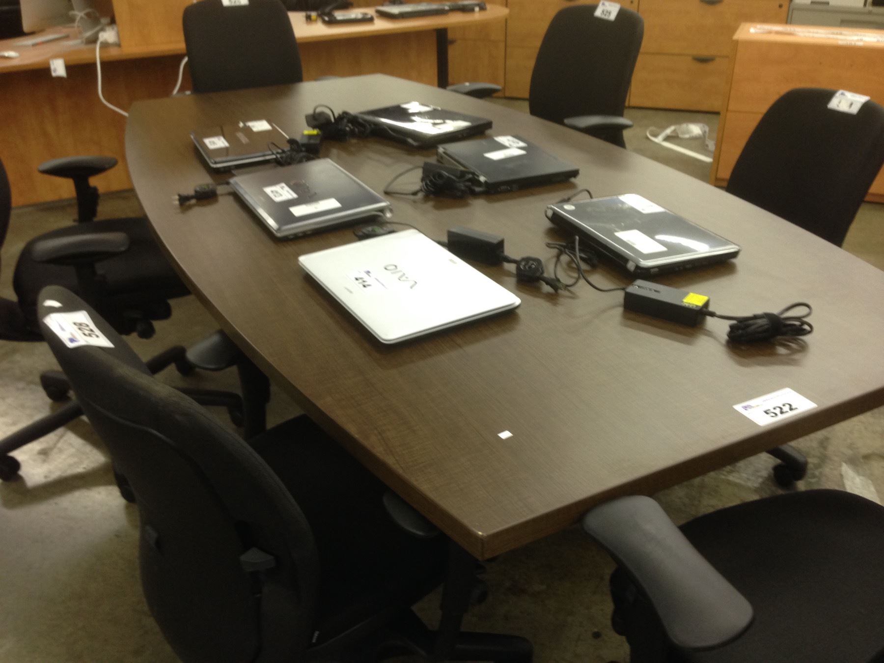 ASH BROWN 8' X 4' BOAT SHAPE BOARD ROOM TABLE