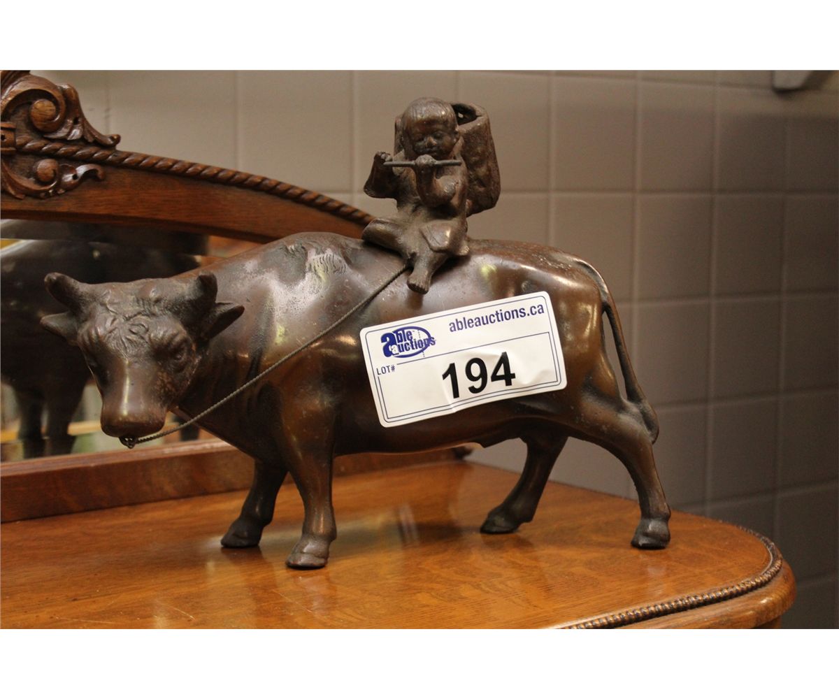 ASIAN BRONZE SCULPTURE OF BOY ON A COW