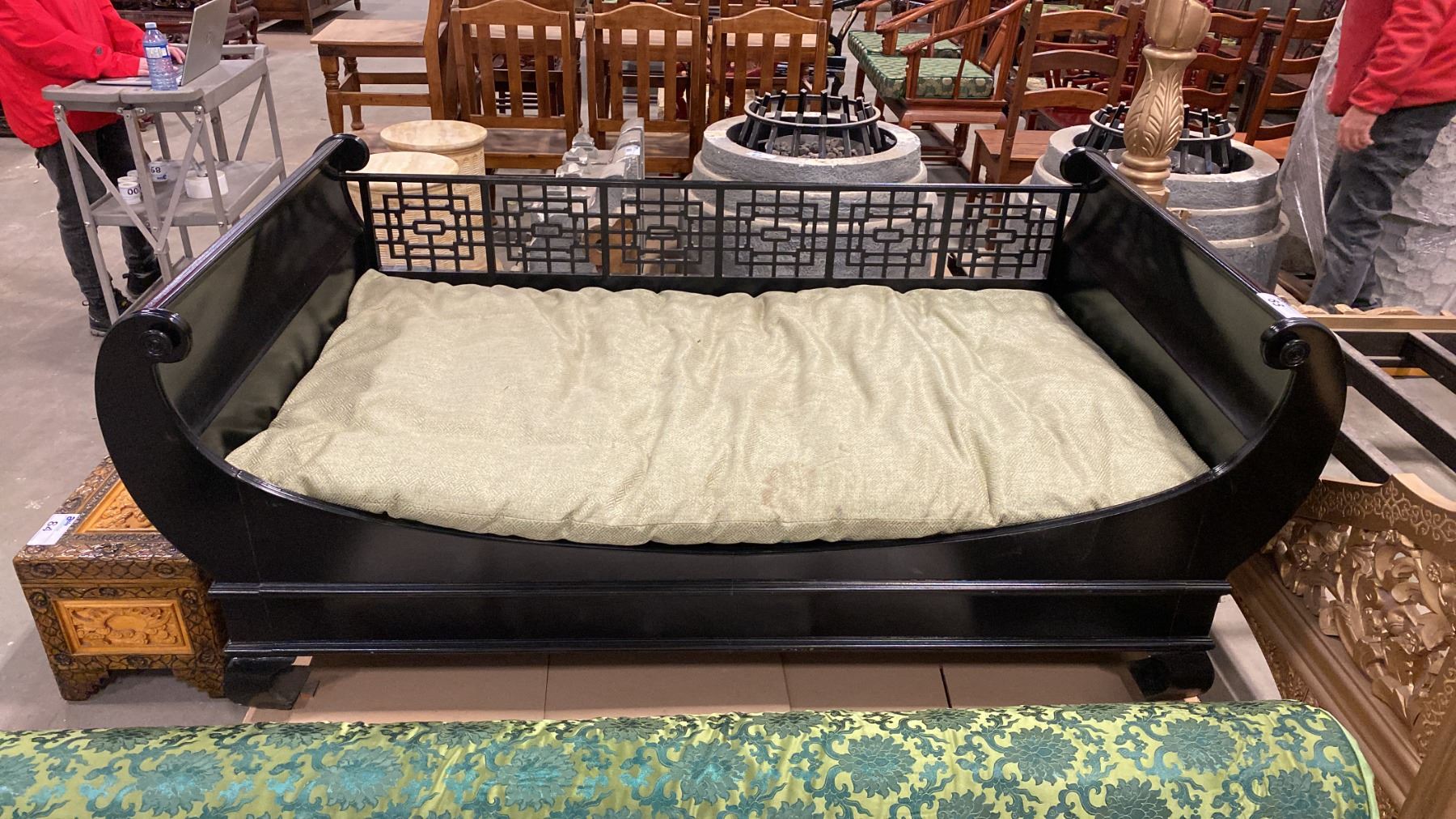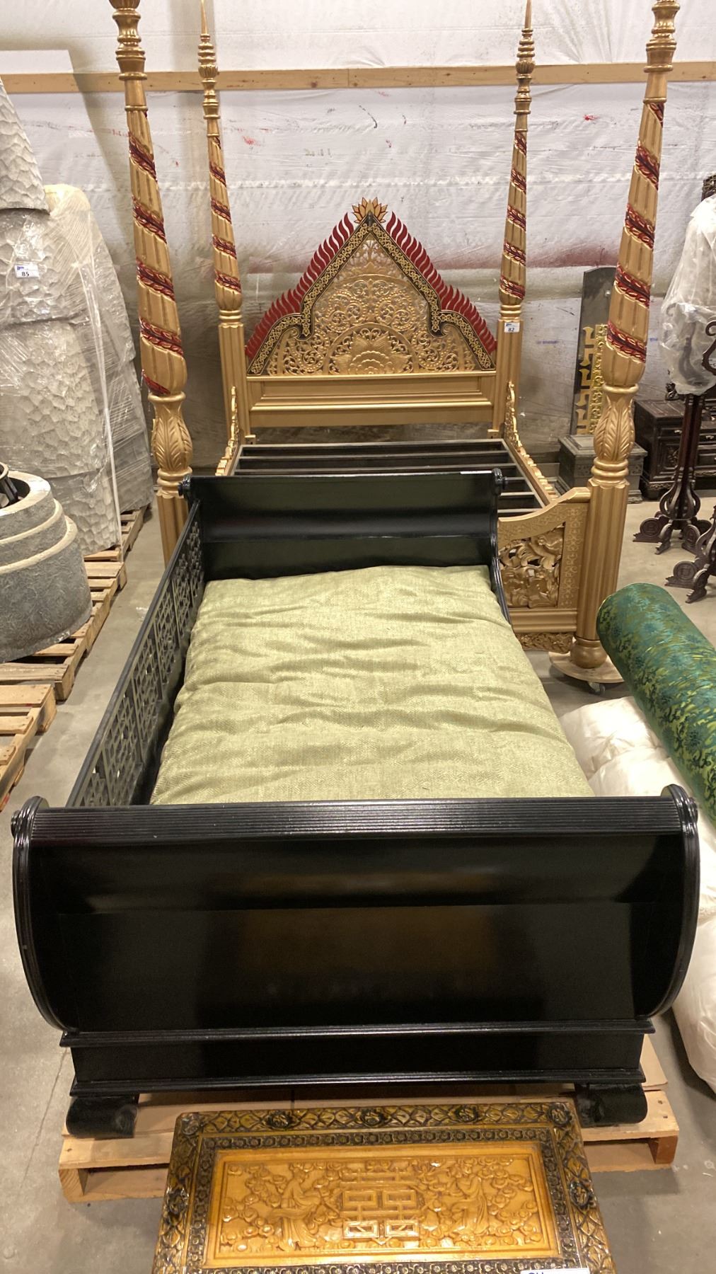 ASIAN SOLID WOOD WITH BLACK FINISH BED * COMES WITH GREEN UPHOLSTERED FUTON MATTRESS*