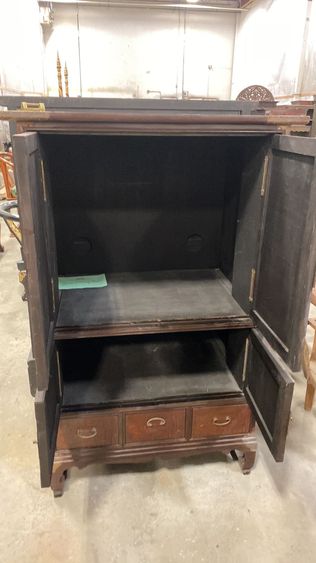 ASIAN SOLID WOOD WITH BRASS ACCENTS WARDROBE CABINET