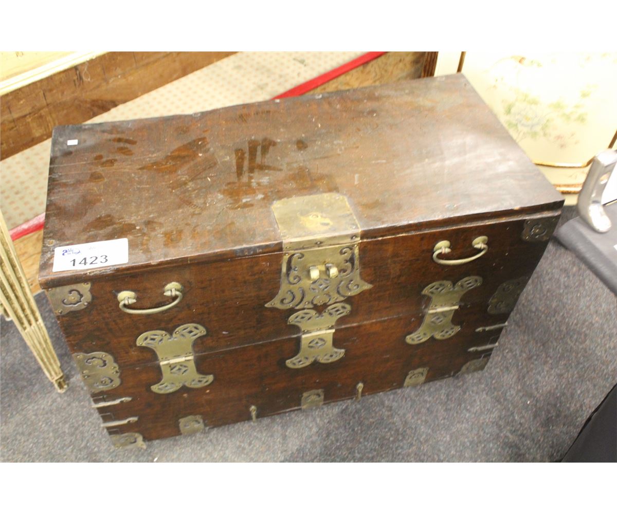 ASIAN WOODEN CHEST W/ BRASS FIXTURES
