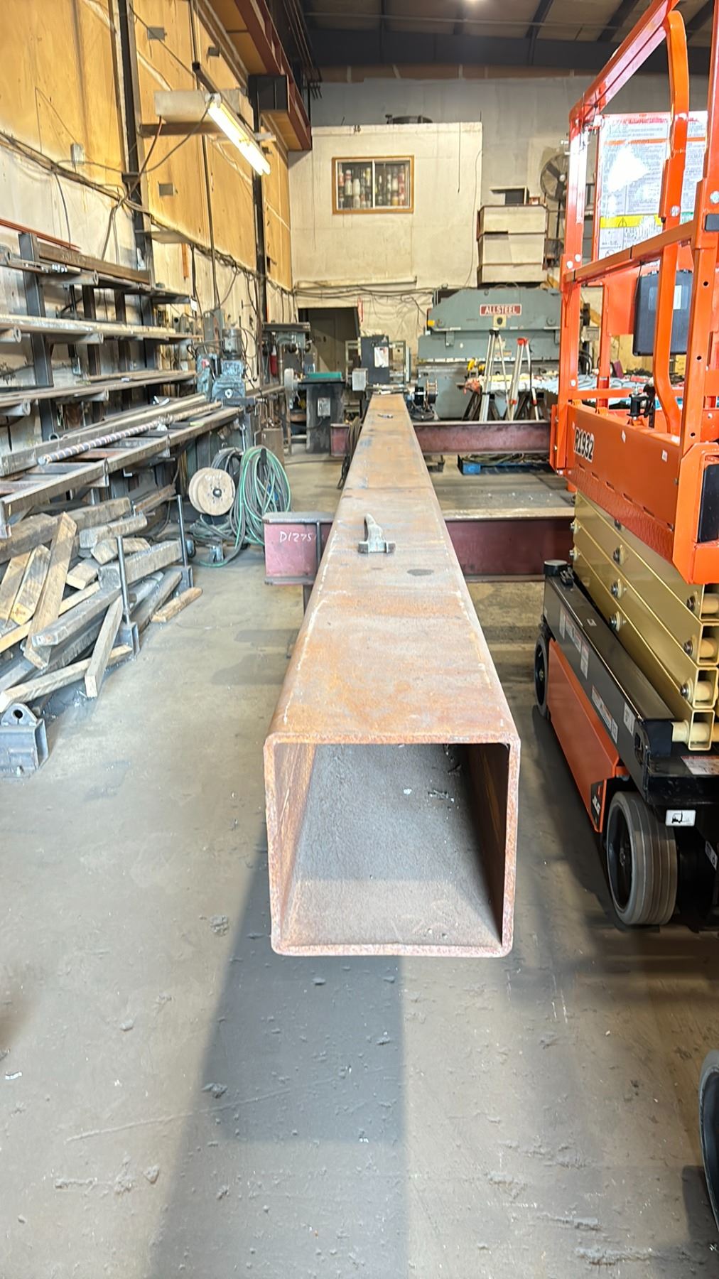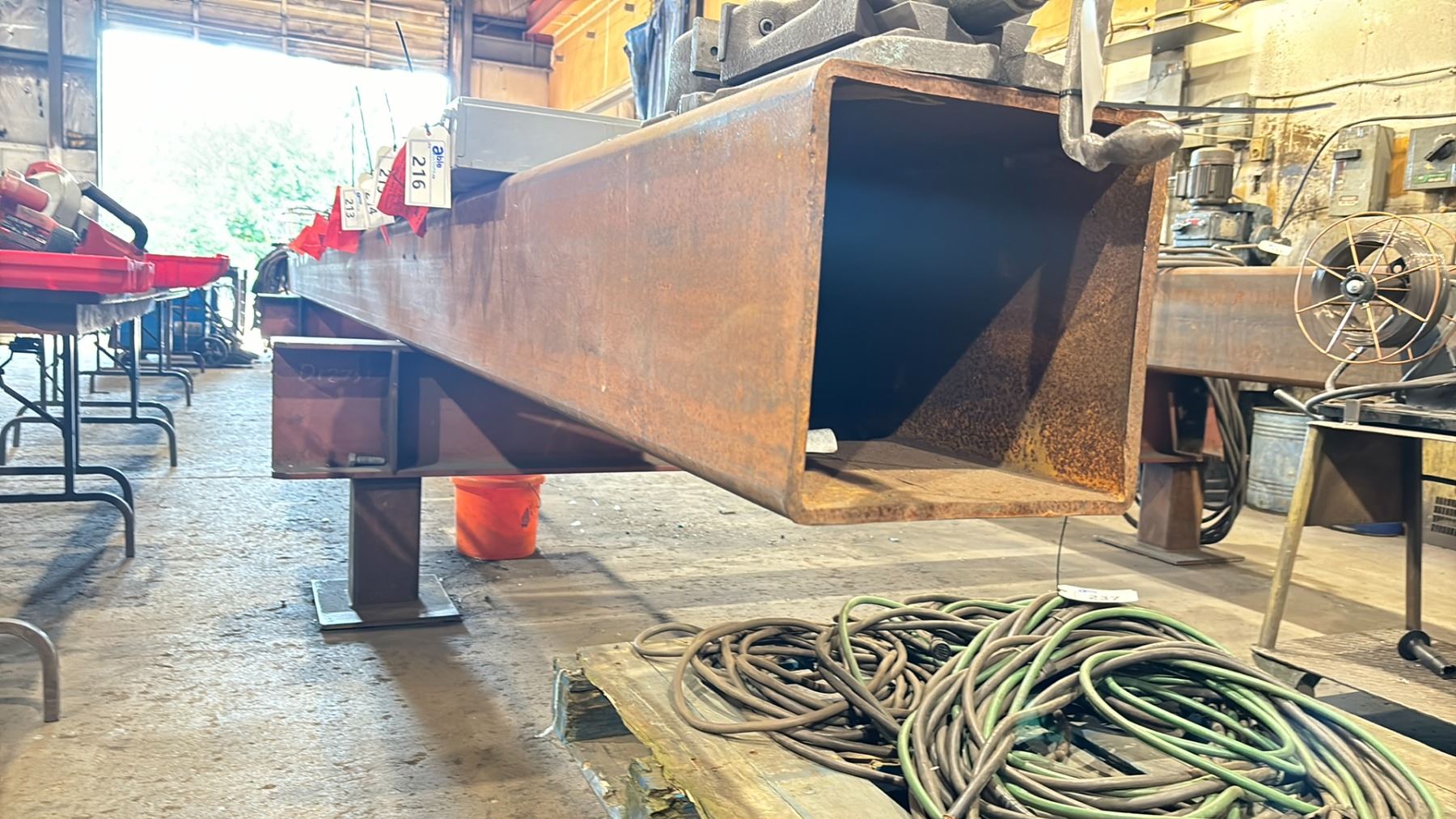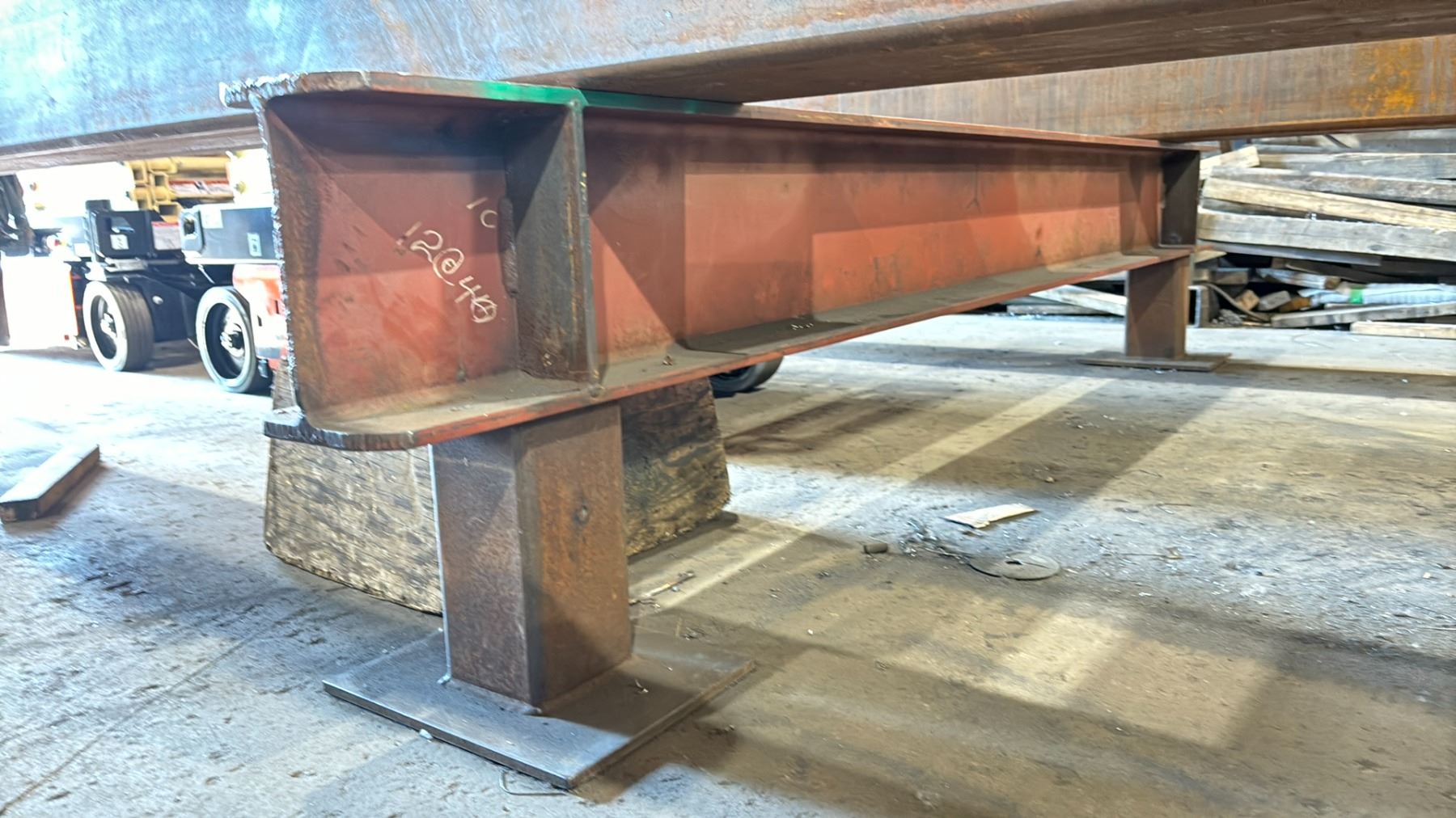 ASSEMBLY LAYOUT WITH 35' AND 40' 12" SQUARE BEAMS WITH 12" X 10' I-BEAM STANDS *REQUIRES HIAB/CRANE FOR REMOVAL*