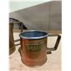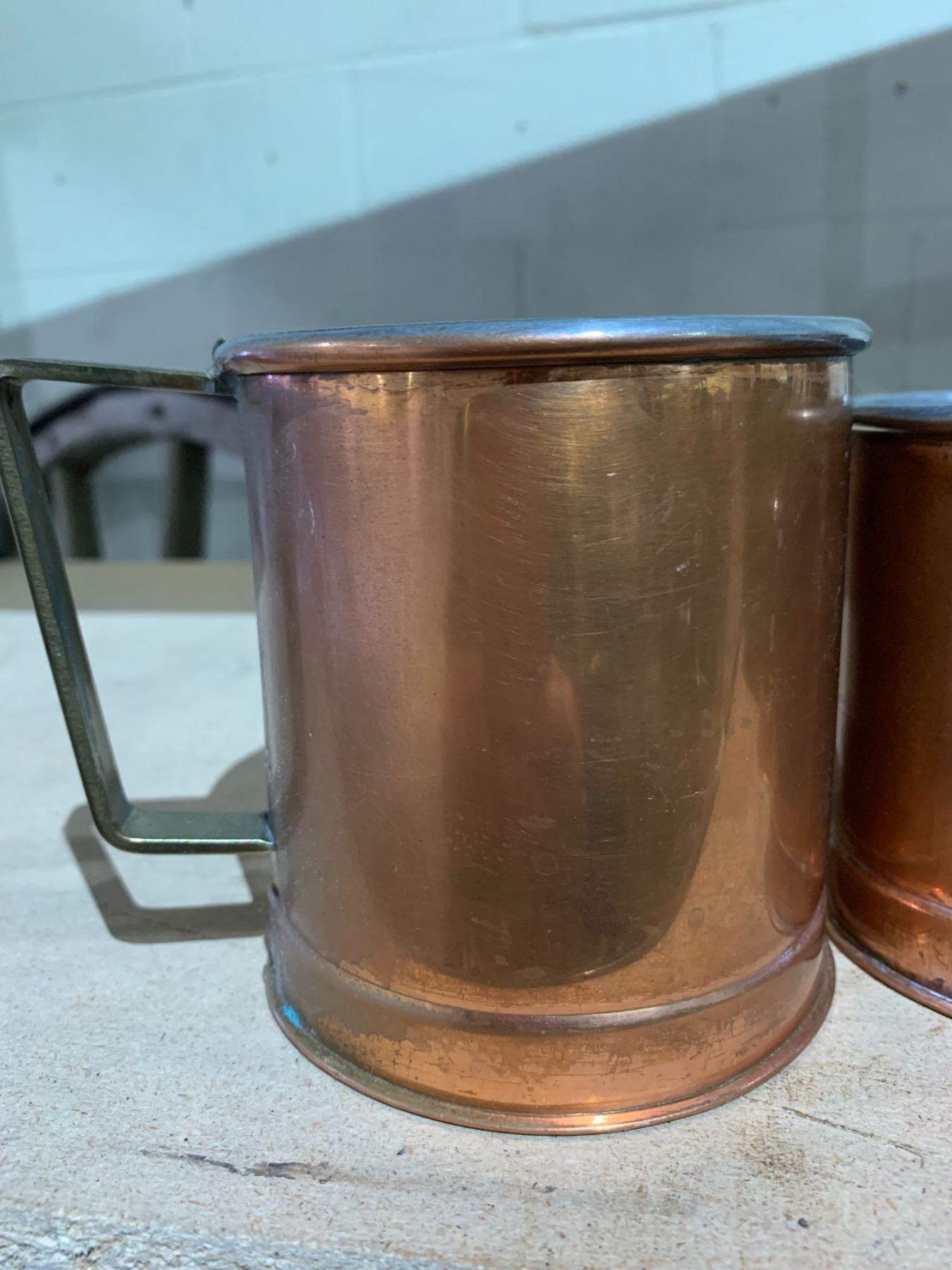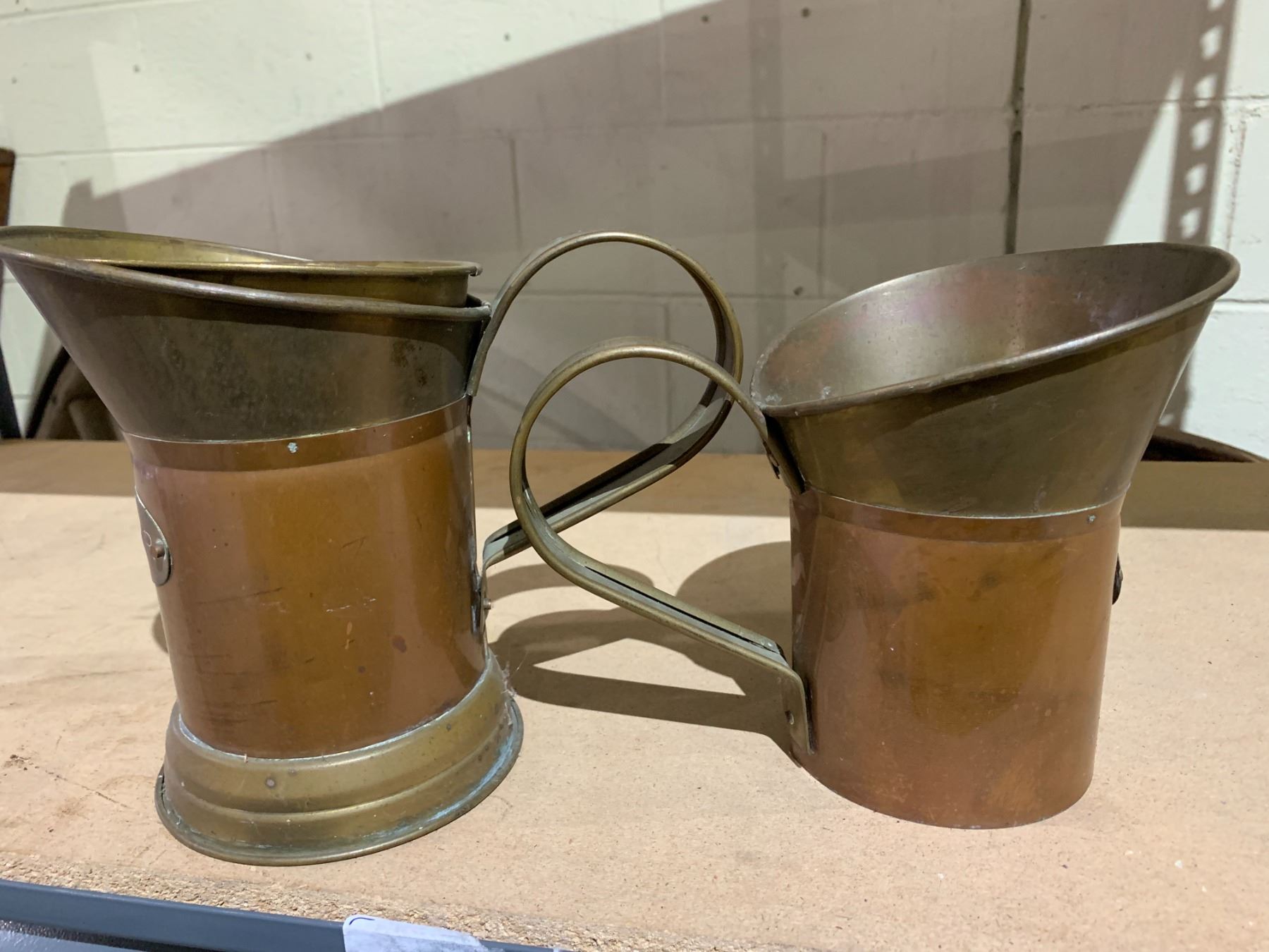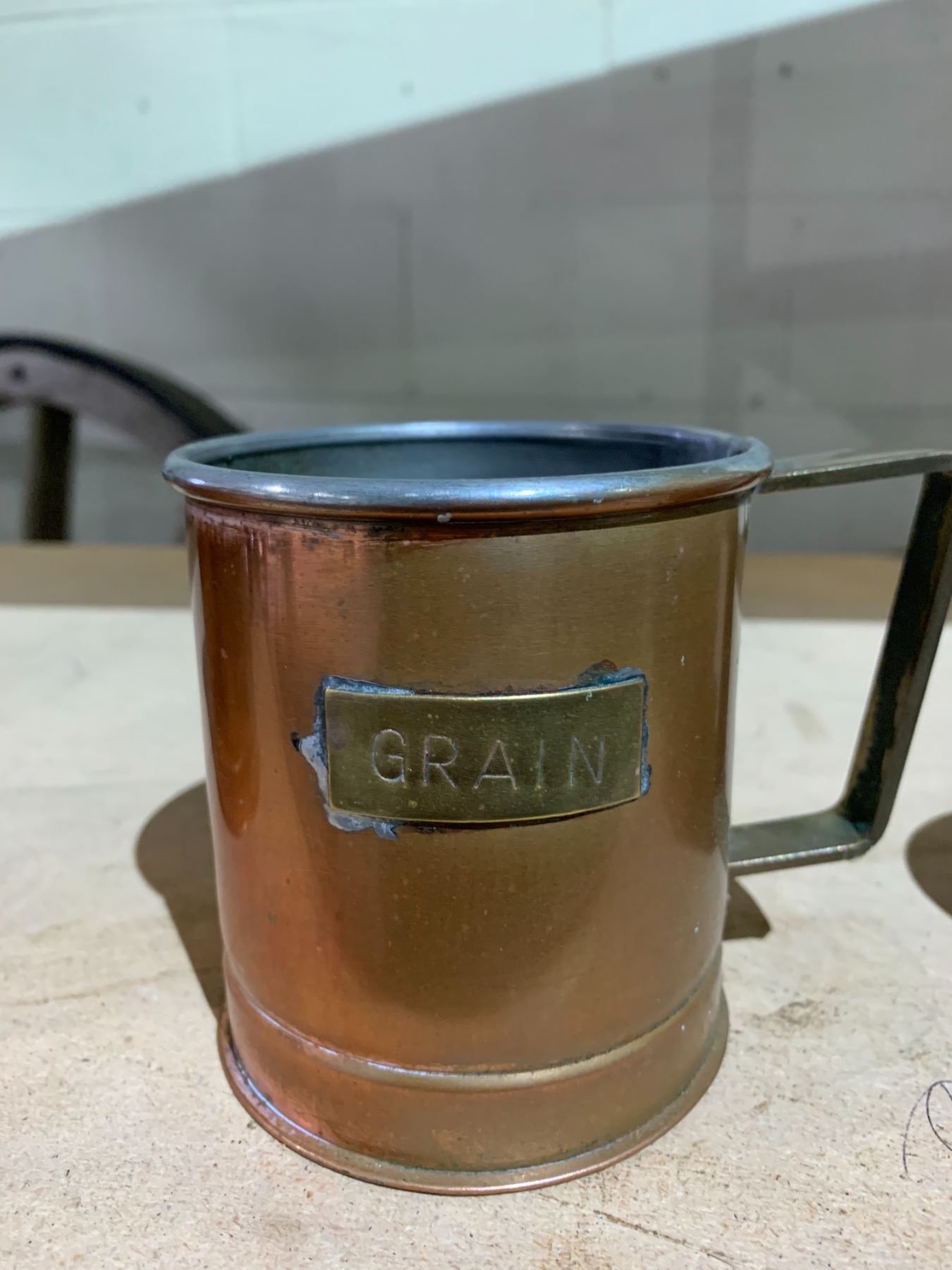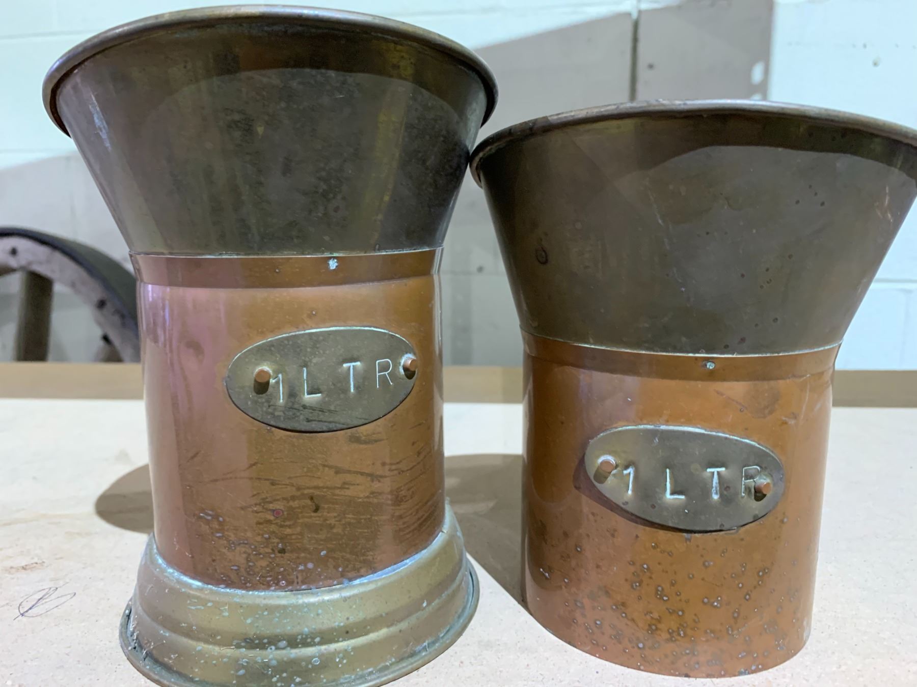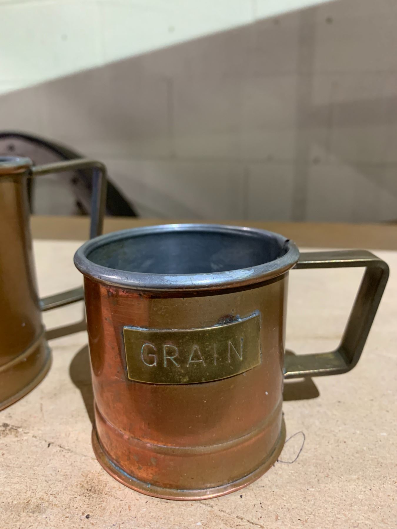 ASSORTED ANTIQUES INCLUDING; BRASS MUGS, LARGE TEAPOT, BELL & MORE