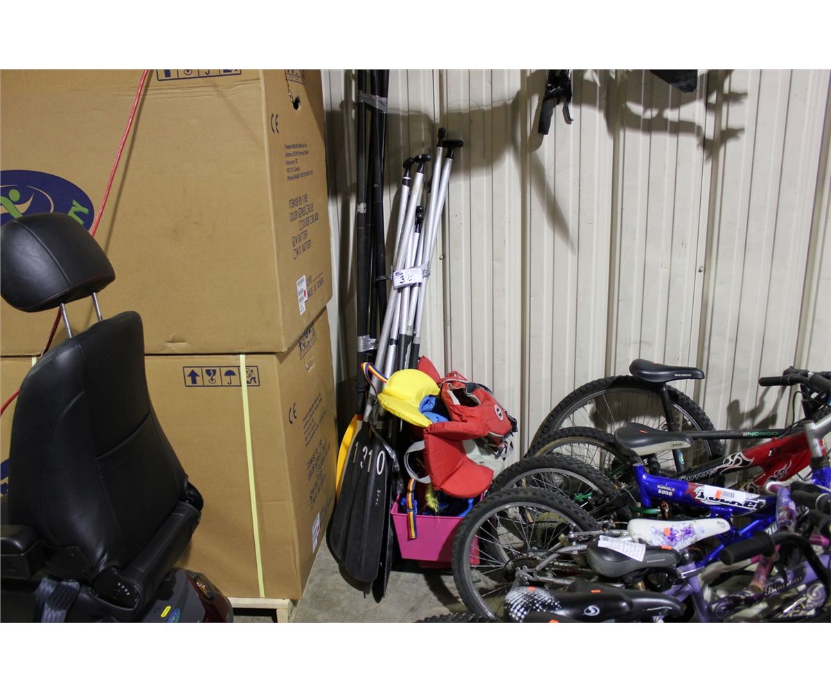 ASSORTED AQUA BOUND KAYAK AND CANOE PADDLES, LIFE JACKETS, SAFETY FLOATATION AND ACCESSORIES