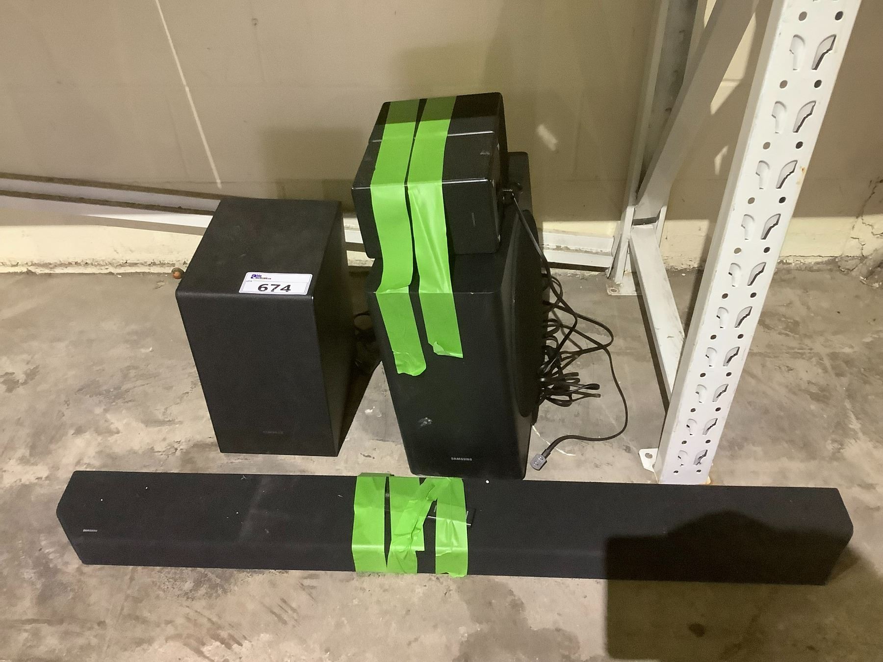 ASSORTED AUDIO PRODUCTS INCLUDING; SAMSUNG SOUND BAR, 2 SAMSUNG SUBWOOFERS & 2 SAMSUNG SURROUND SPEAKERS (UNKNOWN WORKING CONDITION)